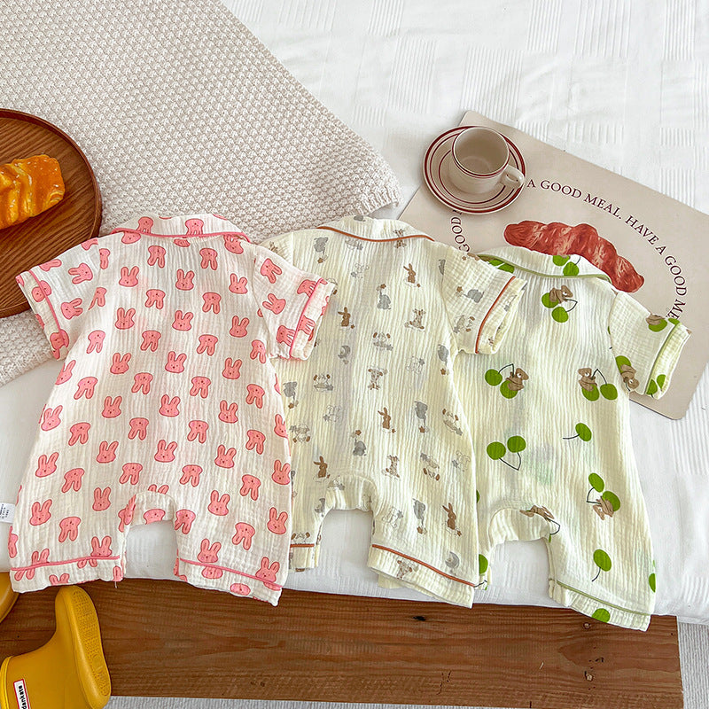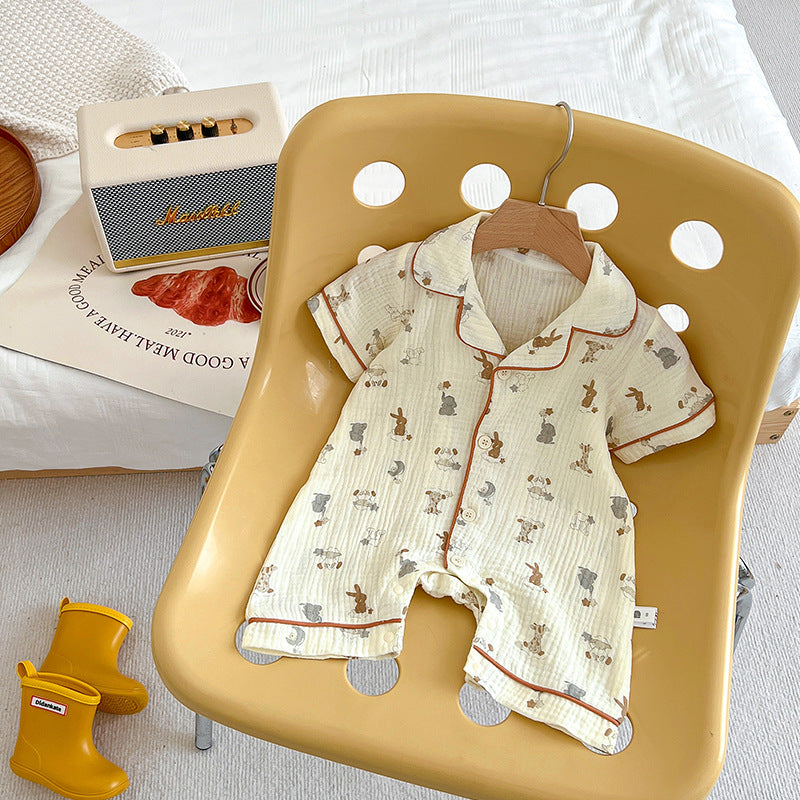 Keep your baby boy or girl comfortable and stylish with our short-sleeved pajamas, perfect for lounging at home. This lightweight pajamas exudes casual charm and is ideal for newborns. Embrace Singapore's fashionable baby attire and dress your little one in cozy elegance.