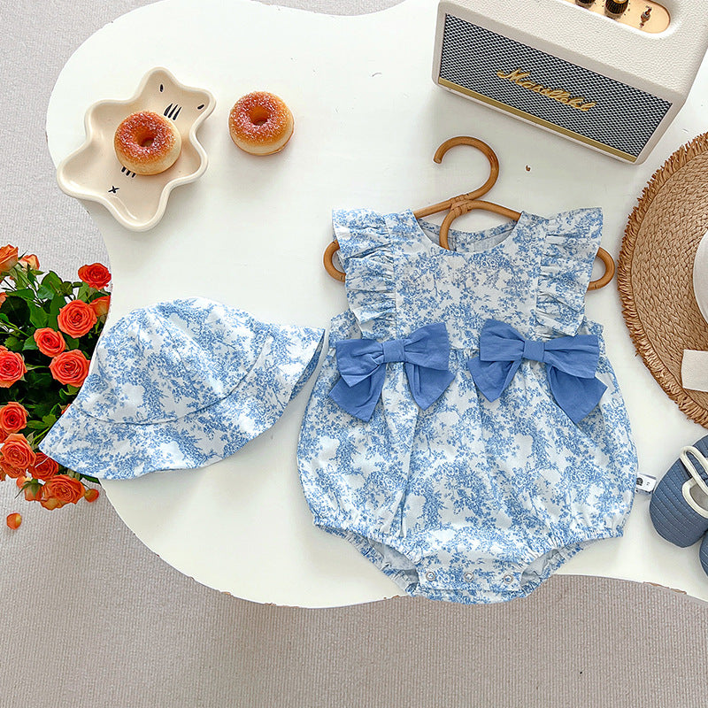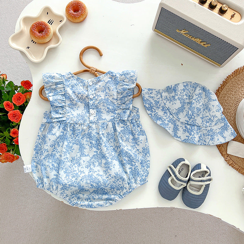 Dress your newborn baby girl in sweet sophistication with our lightweight, sleeveless onesie set, paired with a matching hat. Featuring a charming floral design, this ensemble is perfect for your little princess, adding a touch of sweetness to every moment. Embrace Singapore's stylish baby fashion and dress your baby girl like royalty.