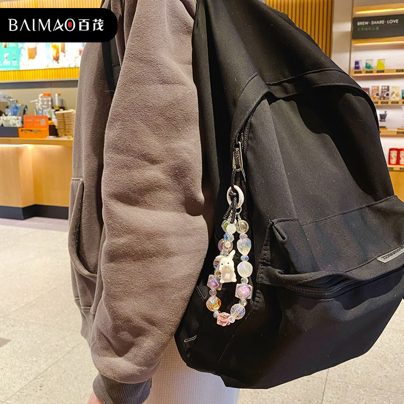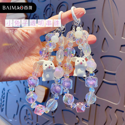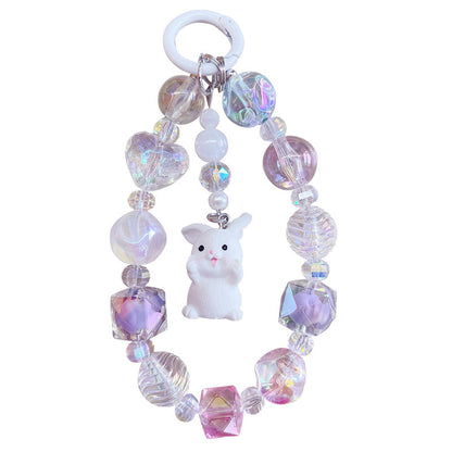 Cartoon bunny transparent bead keychain for men and women, exquisite car keychain, mobile phone chain, couple pendant