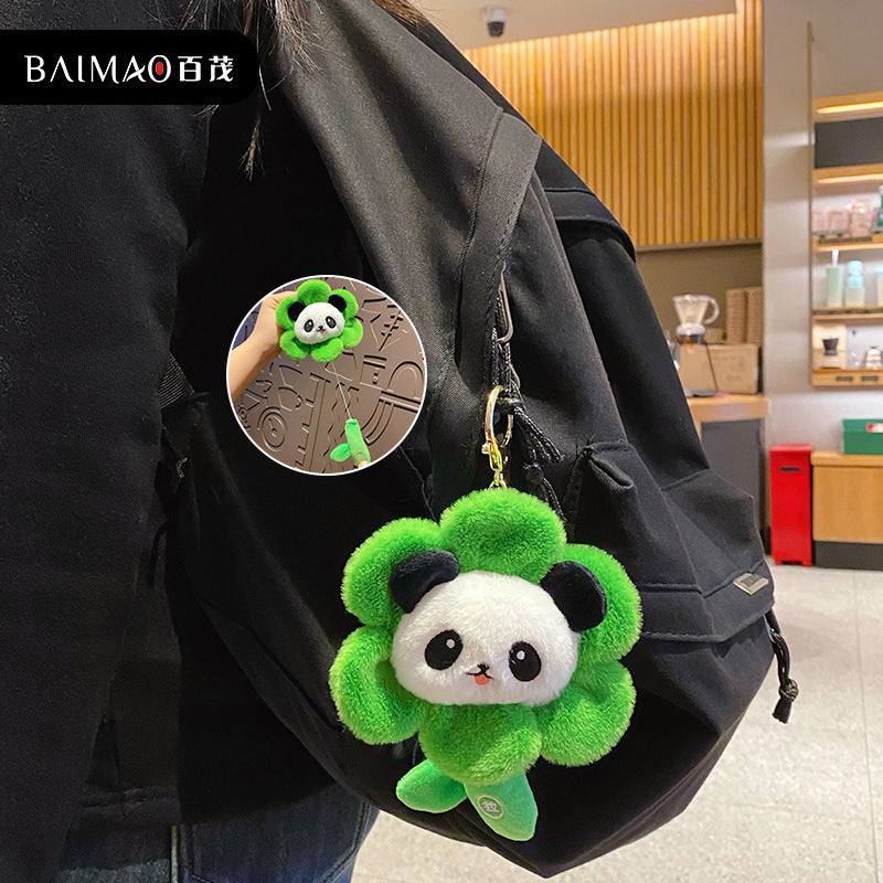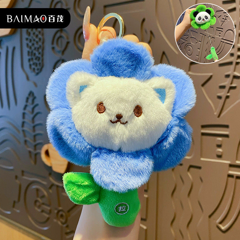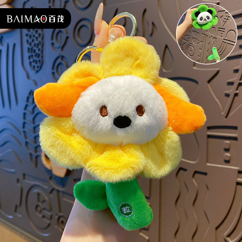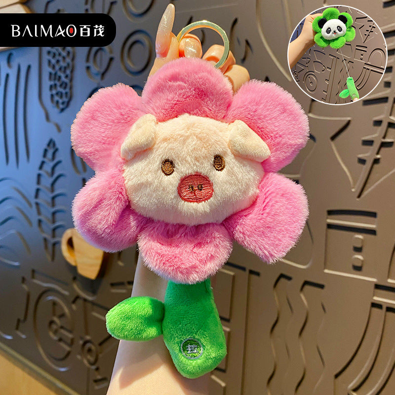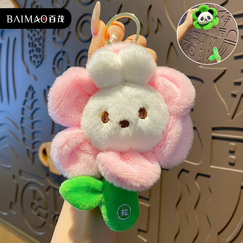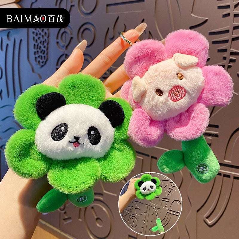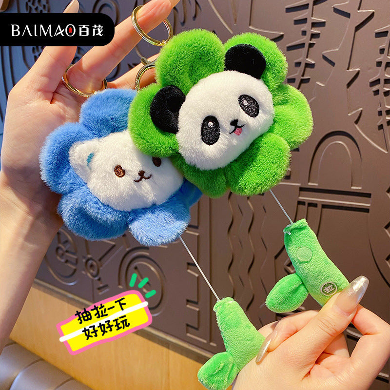 Cartoon Pulling Vibration Flower Cute Pet Plush Doll Keychain Female Cute Flower Panda Keychain Pendant