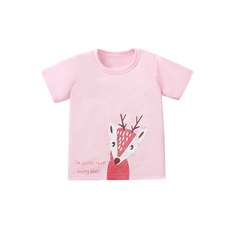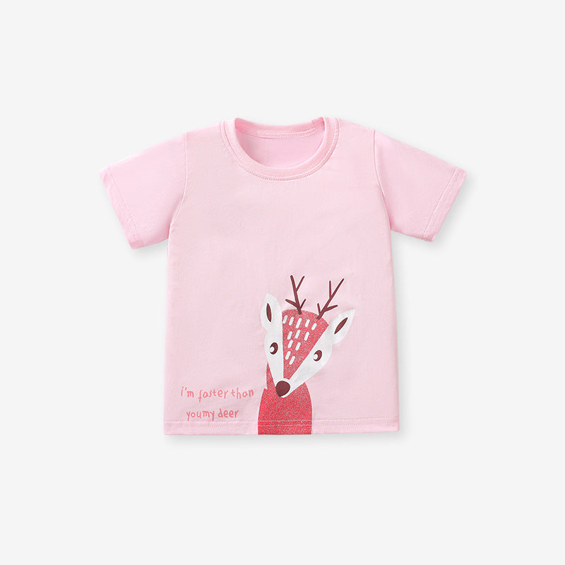 Cartoon Short-Sleeved Cotton T-Shirt for Girls