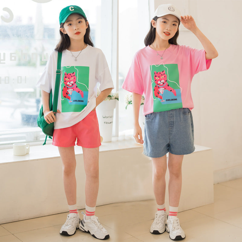 Girls' Chic T-shirt and Shorts Two Pieces Outfit Set