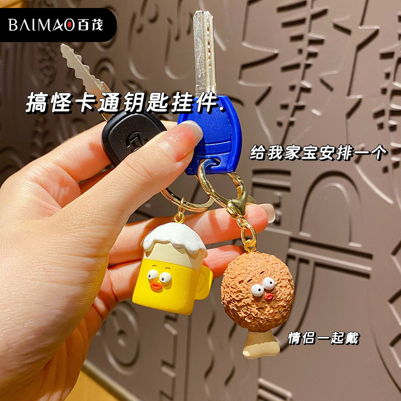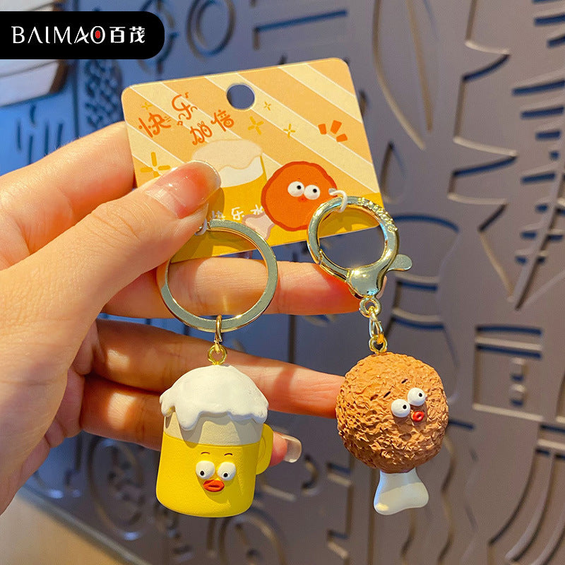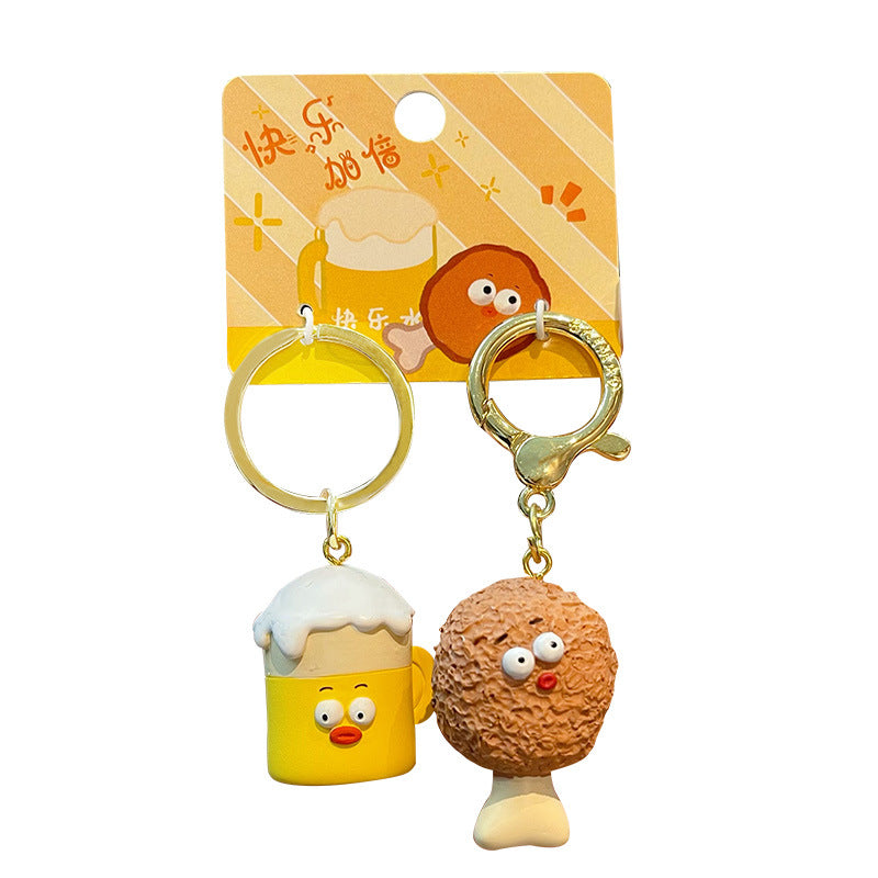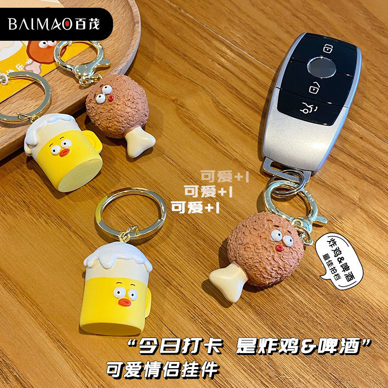 Couple's Chicken Beer Keychain Cute and Exquisite Resin Doll Keychain Pendant Gift