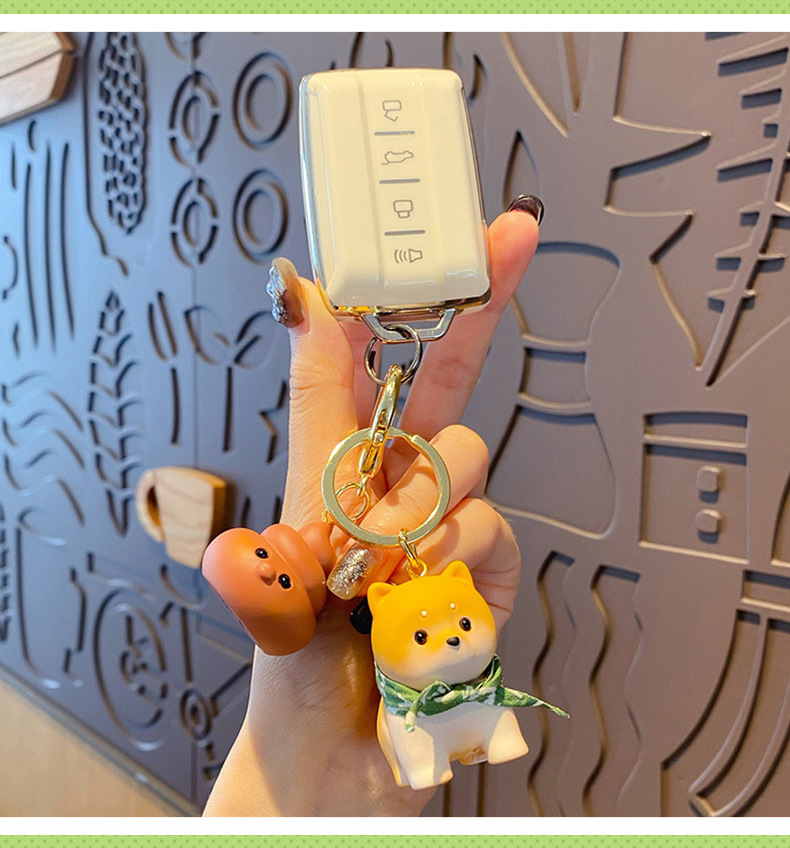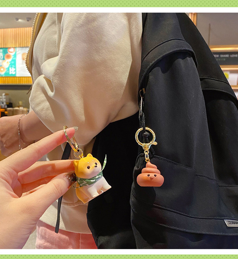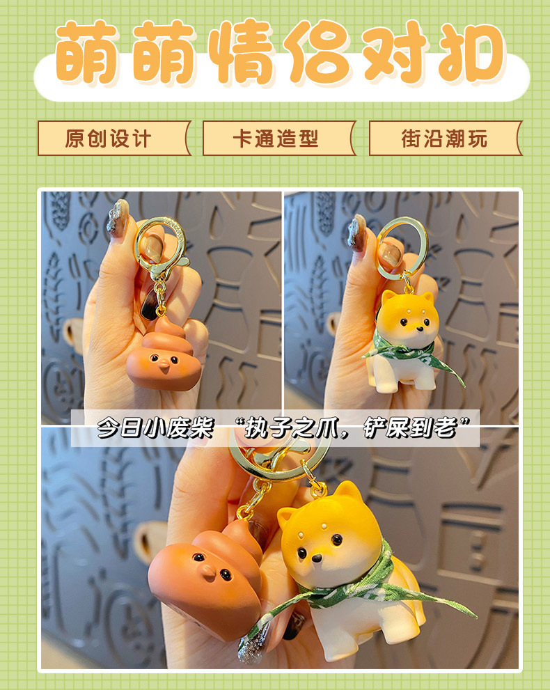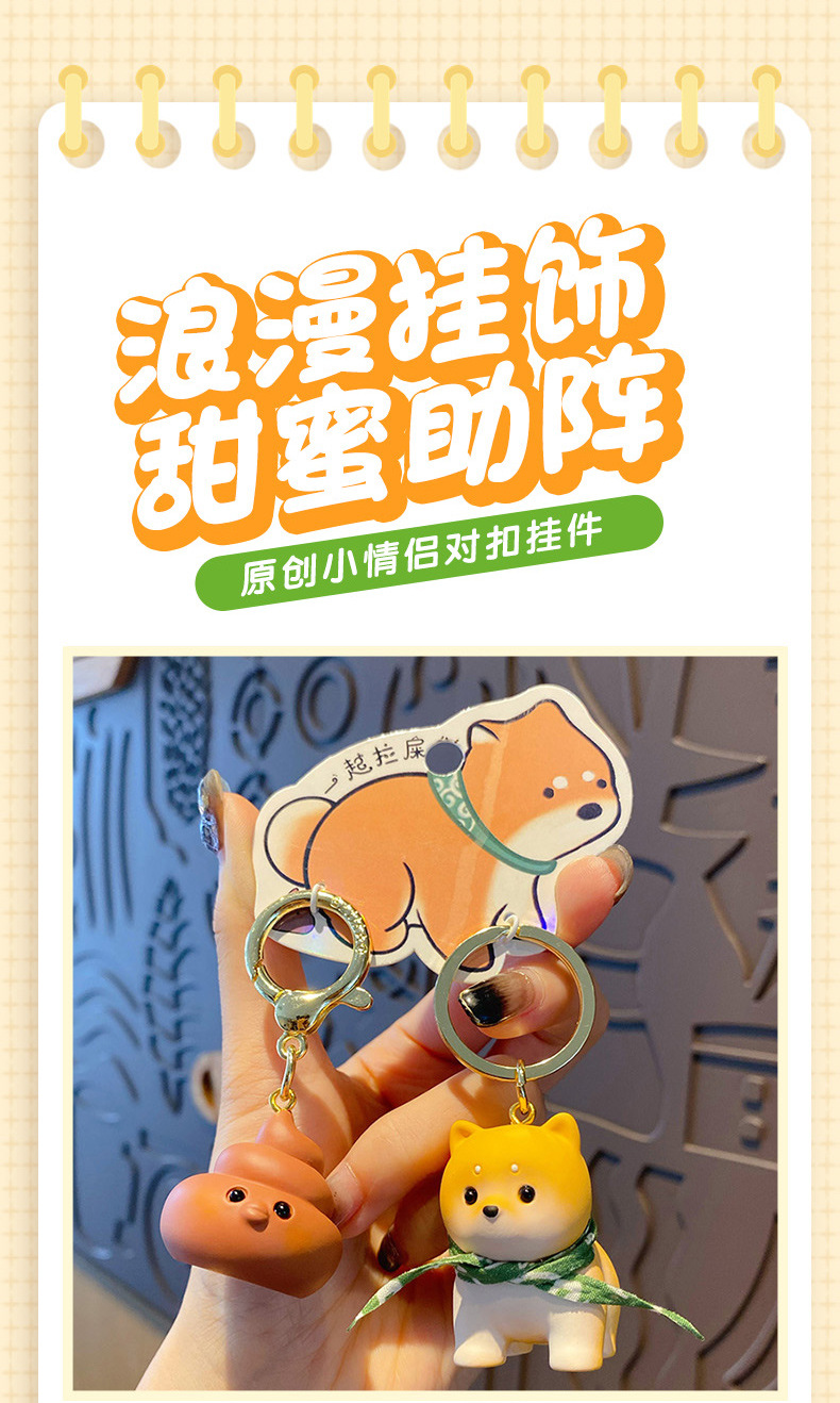 Couple's Cute and Exquisite Chai Dog Resin Doll Keychain Pendant with Small Trash Wood Keychain