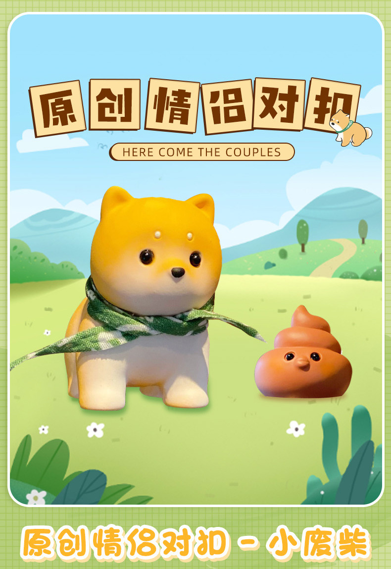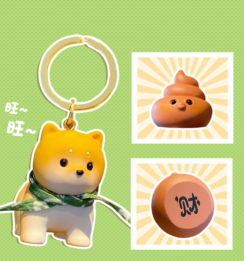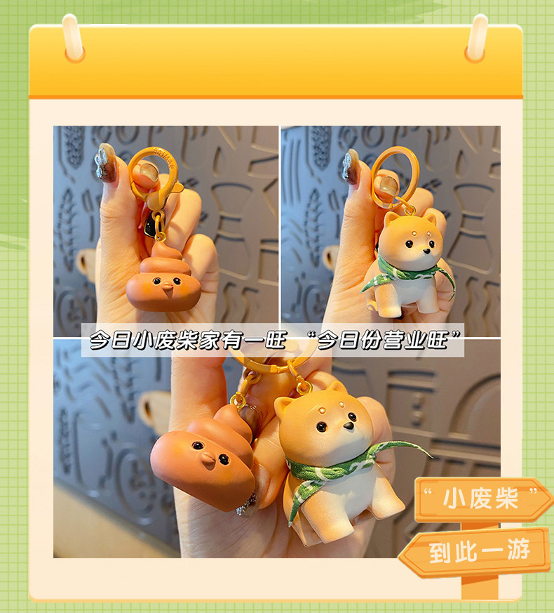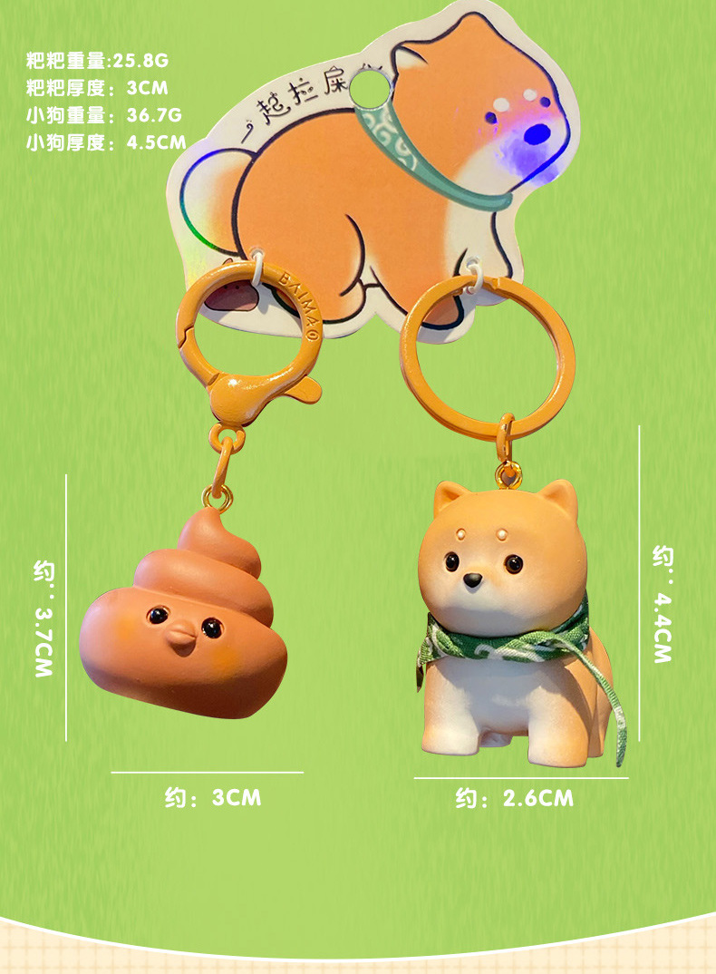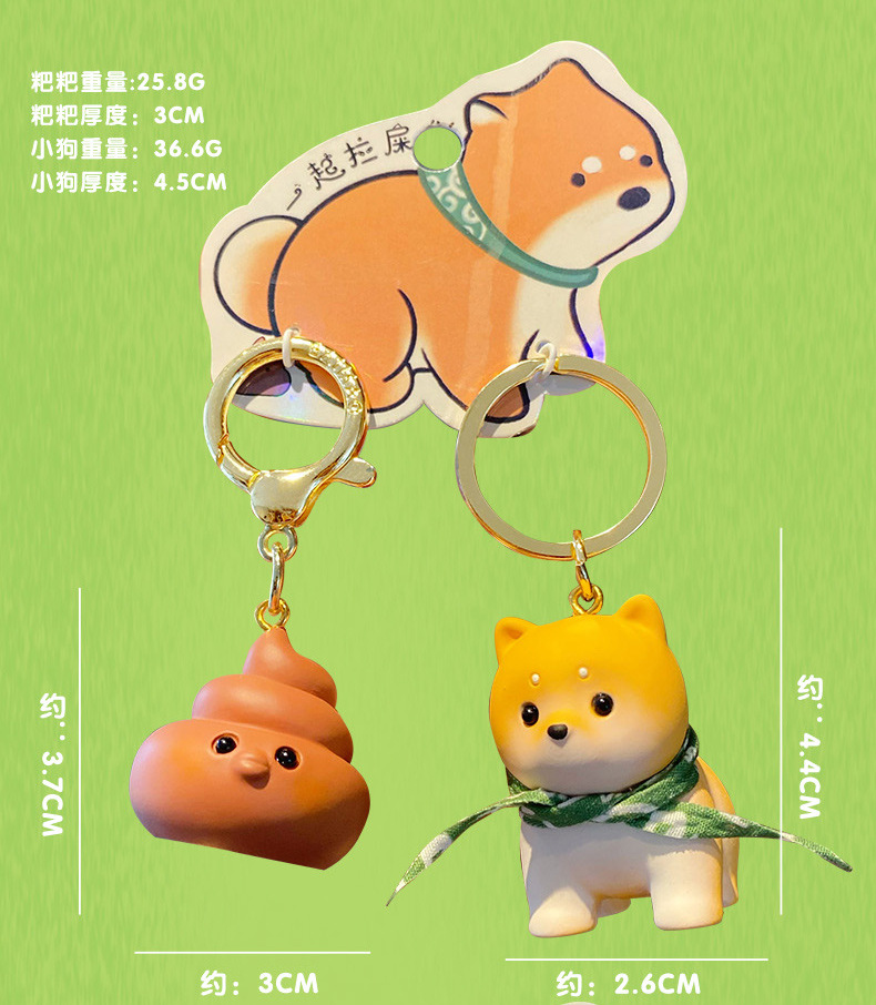 Couple's Cute and Exquisite Chai Dog Resin Doll Keychain Pendant with Small Trash Wood Keychain