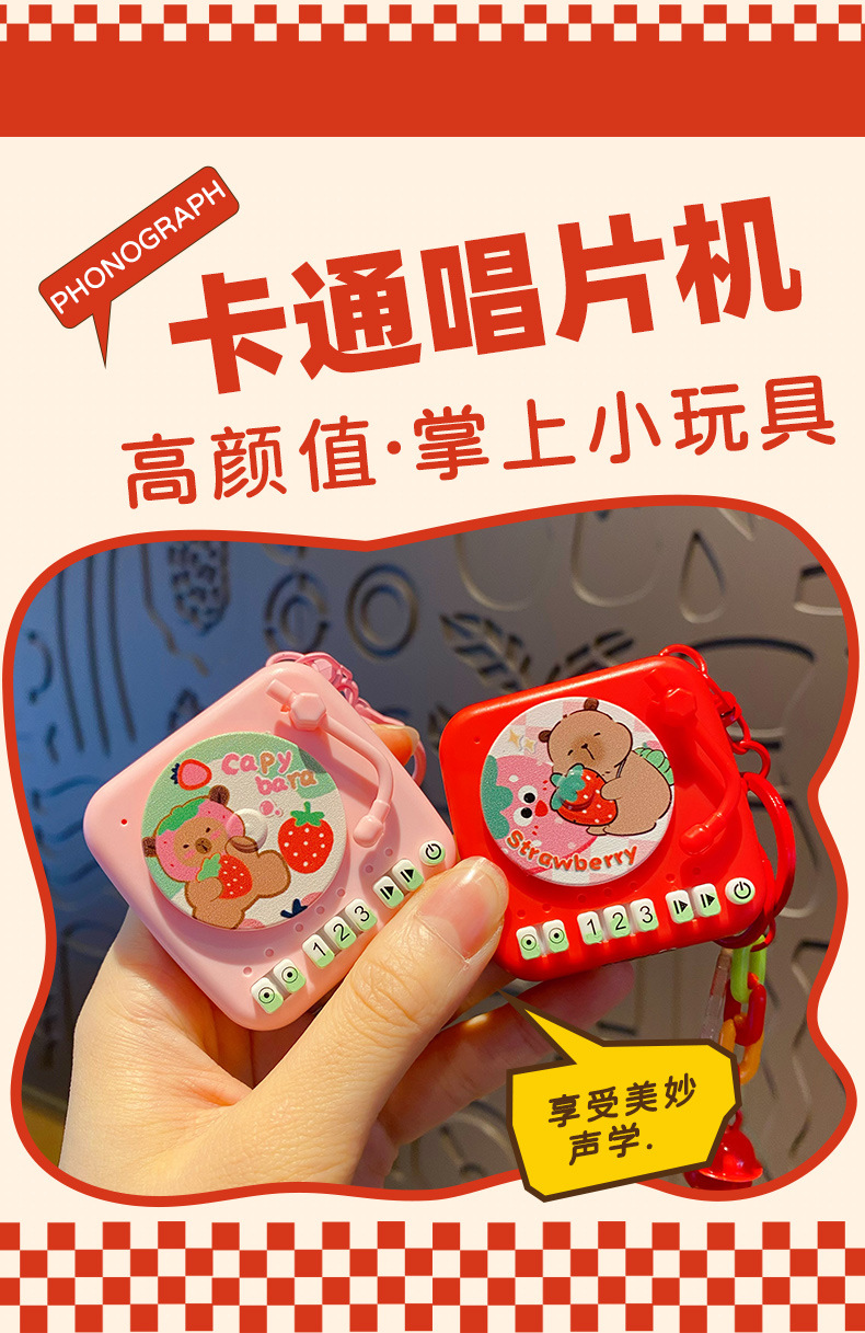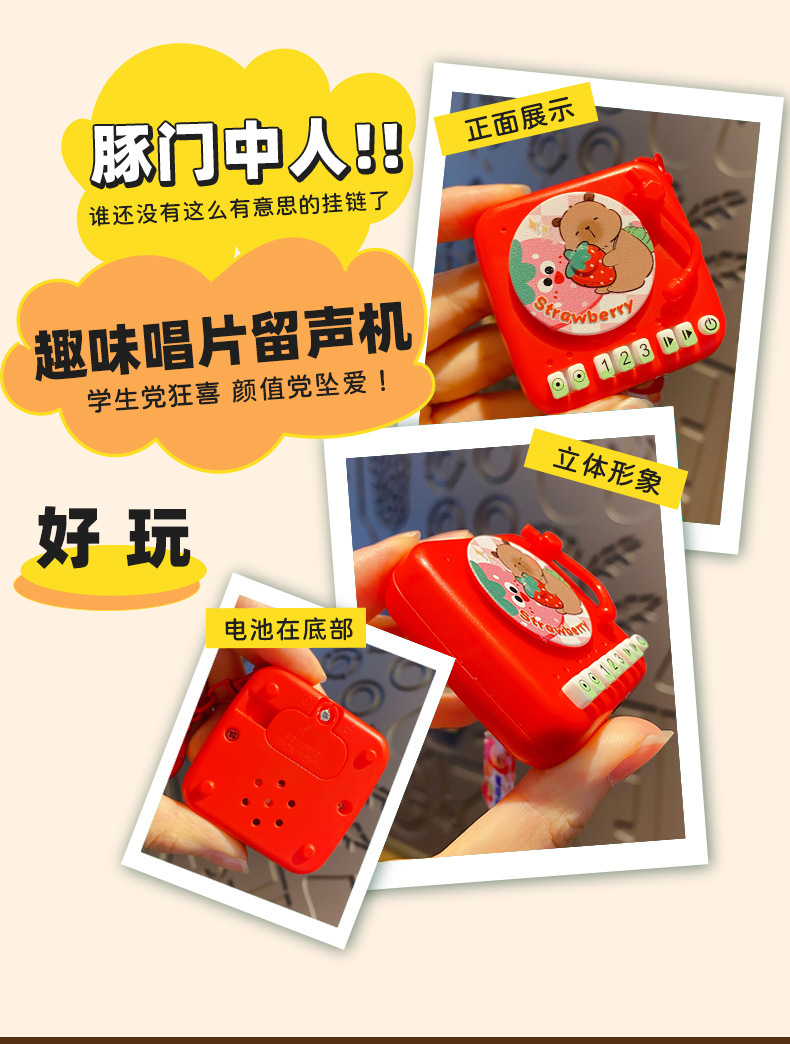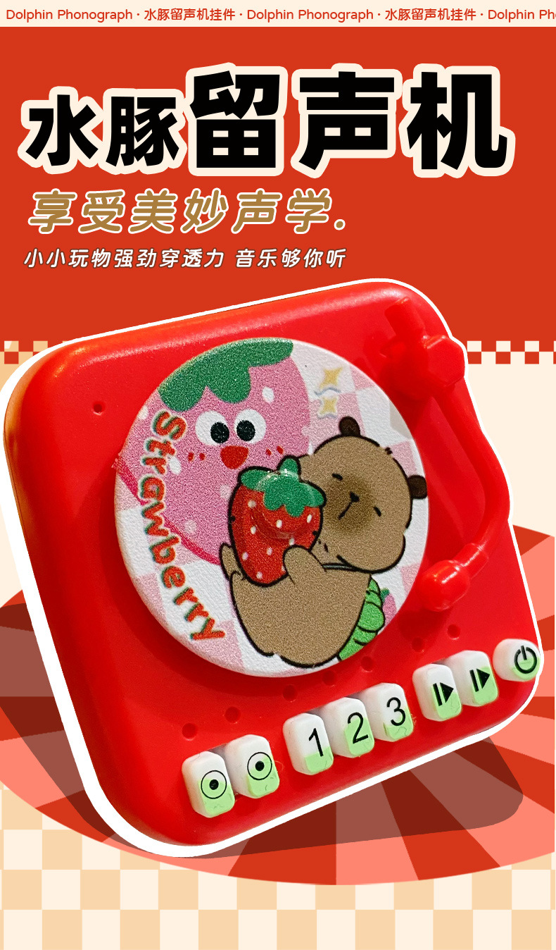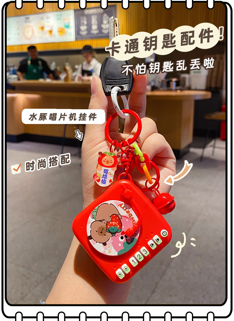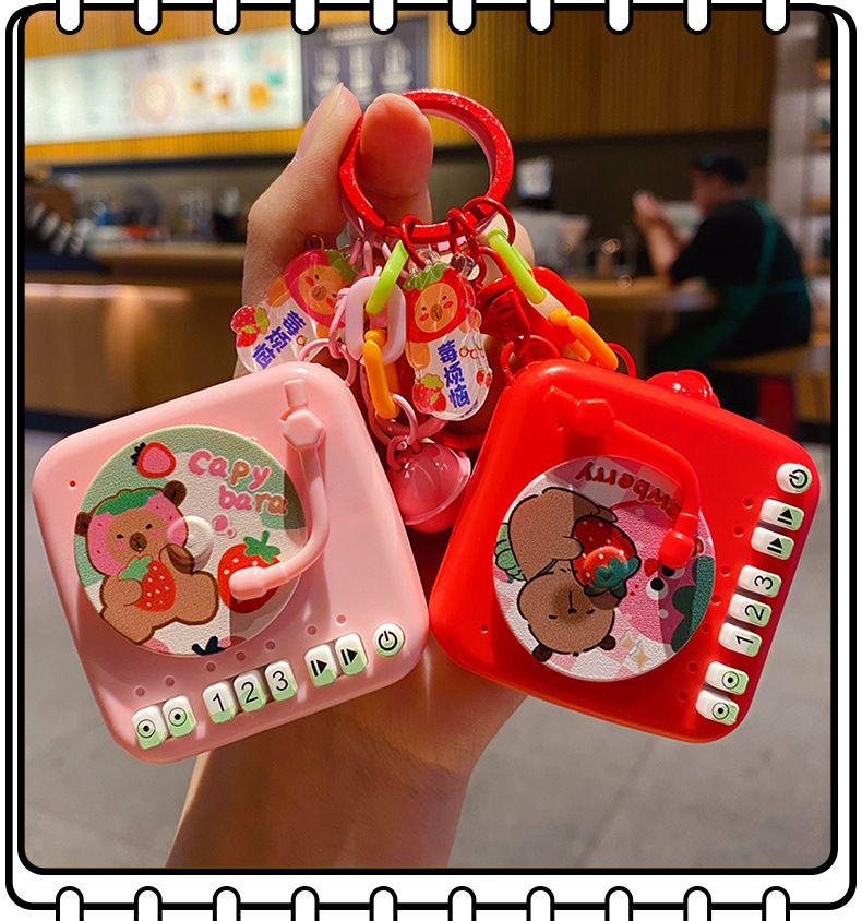 Creative cartoon Buddha style water dolphin fun phonograph keychain pendant, cute strawberry couple retro bag decoration
