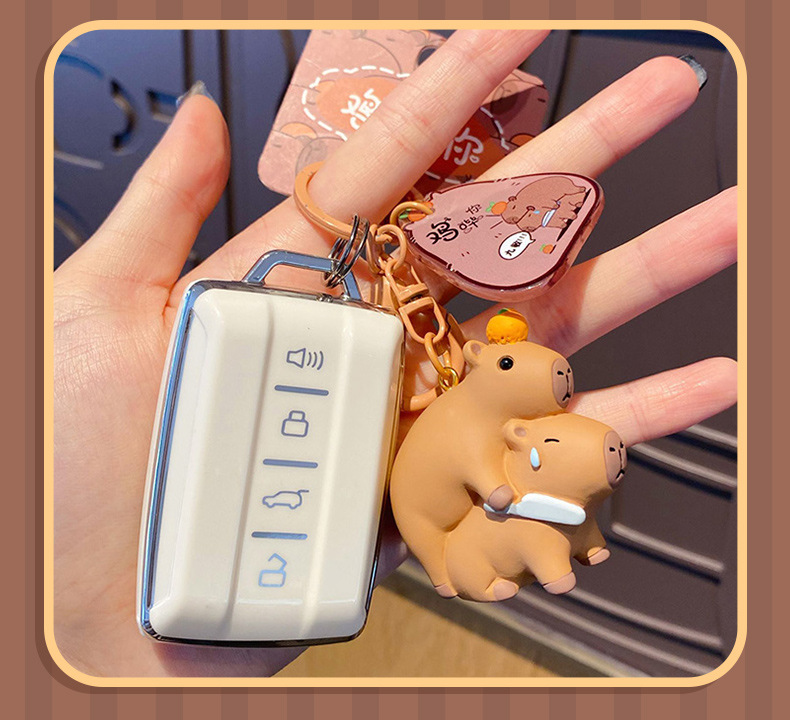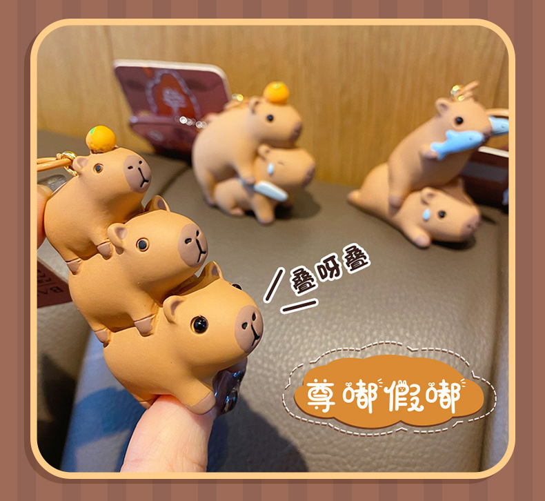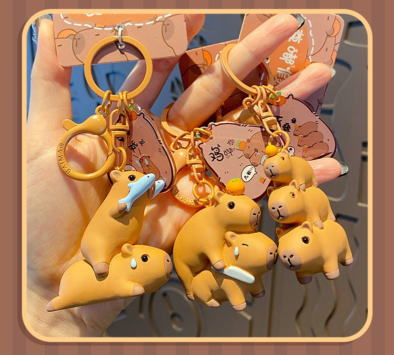 Cute Dolphin Keychain Female Internet Celebrity Resin Capibala Doll Keychain Bag Pendant