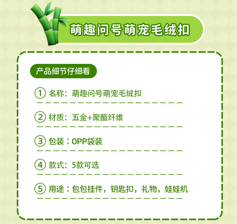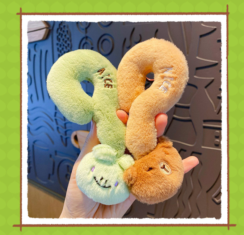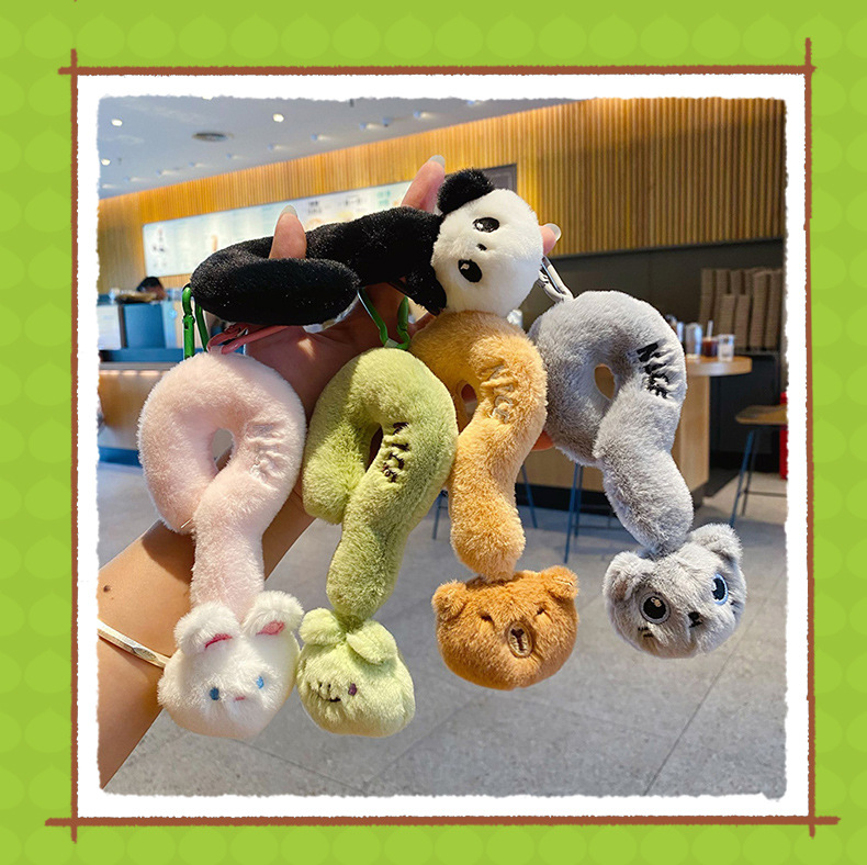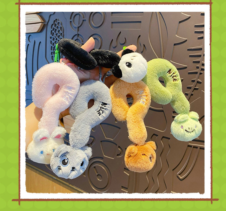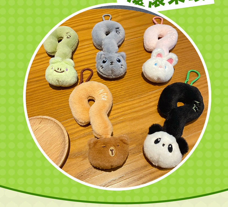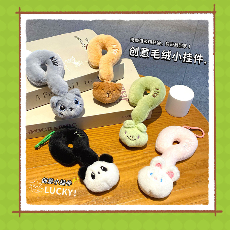Cute question mark, cat plush buckle, car pendant, cute little panda doll, couple backpack, keychain ring, hanging decoration