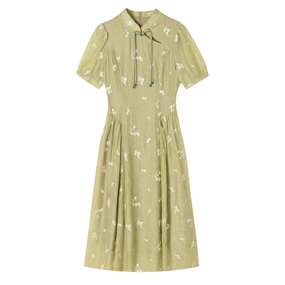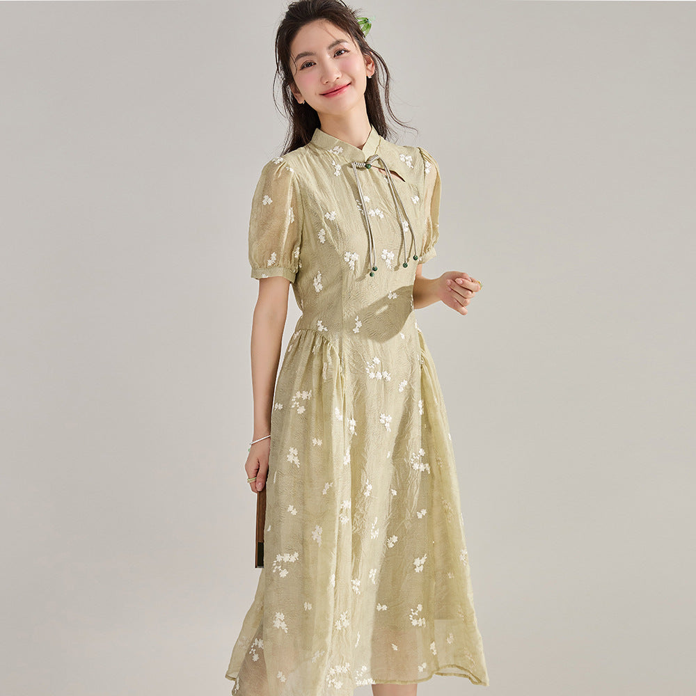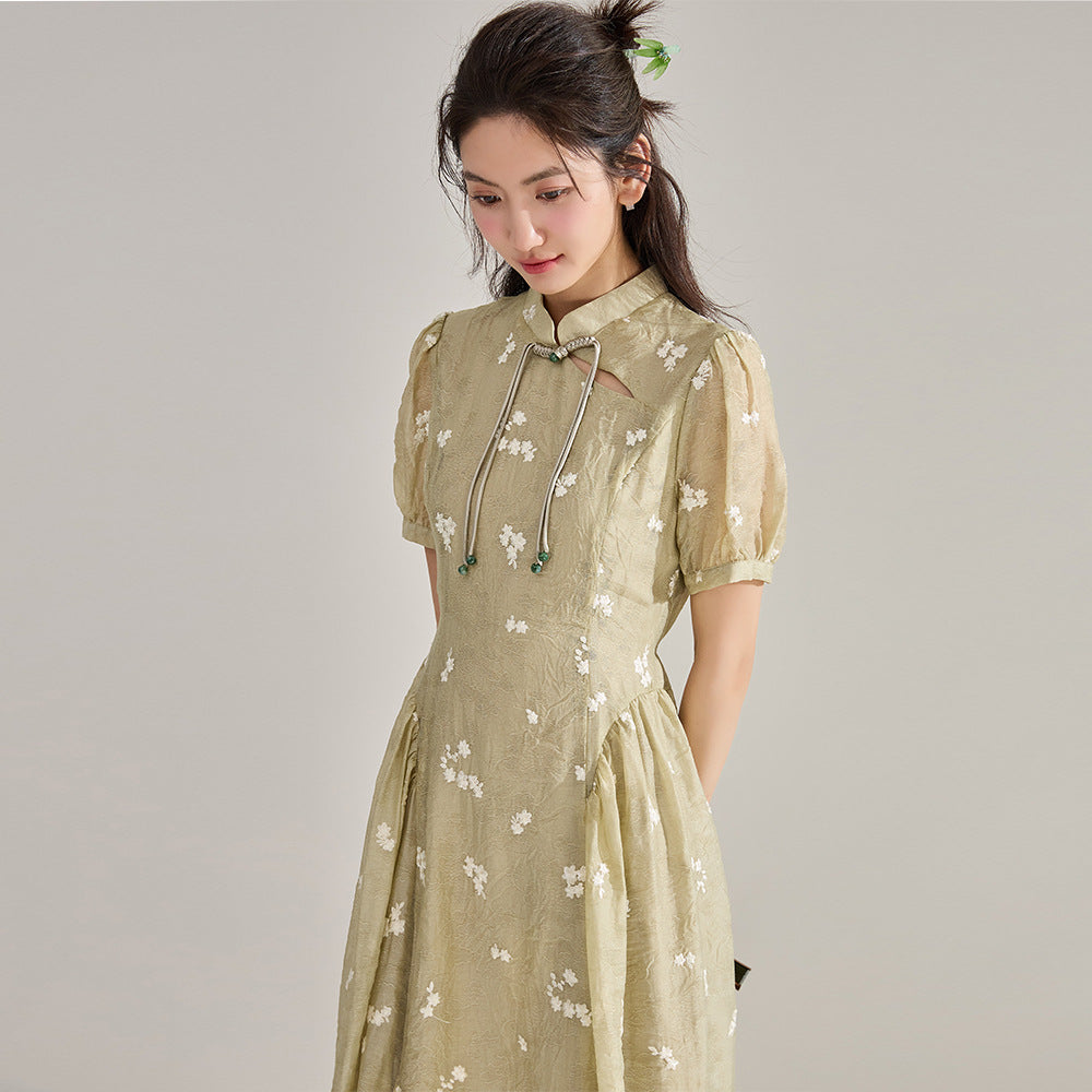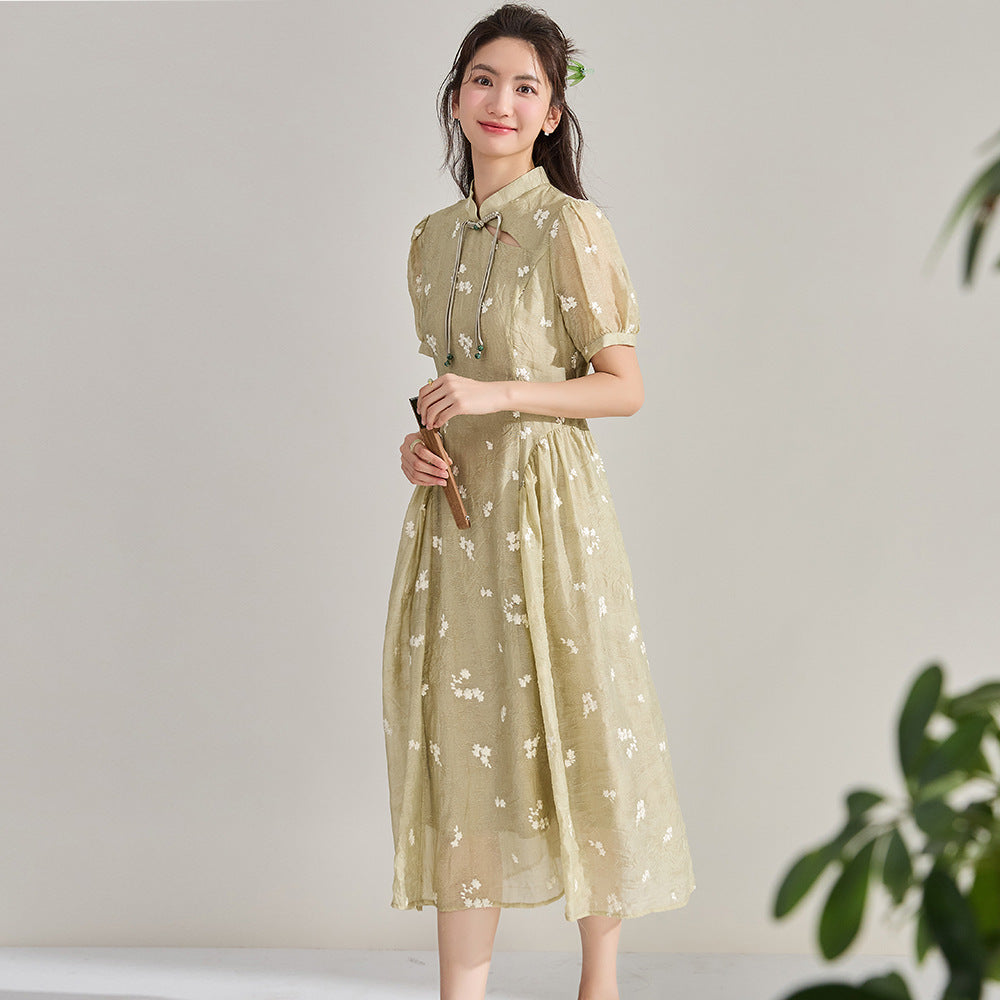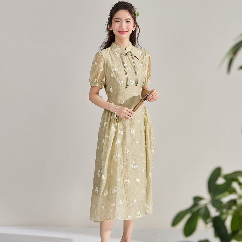 Elegant Tencel Embroidery Floral Qipao Dress