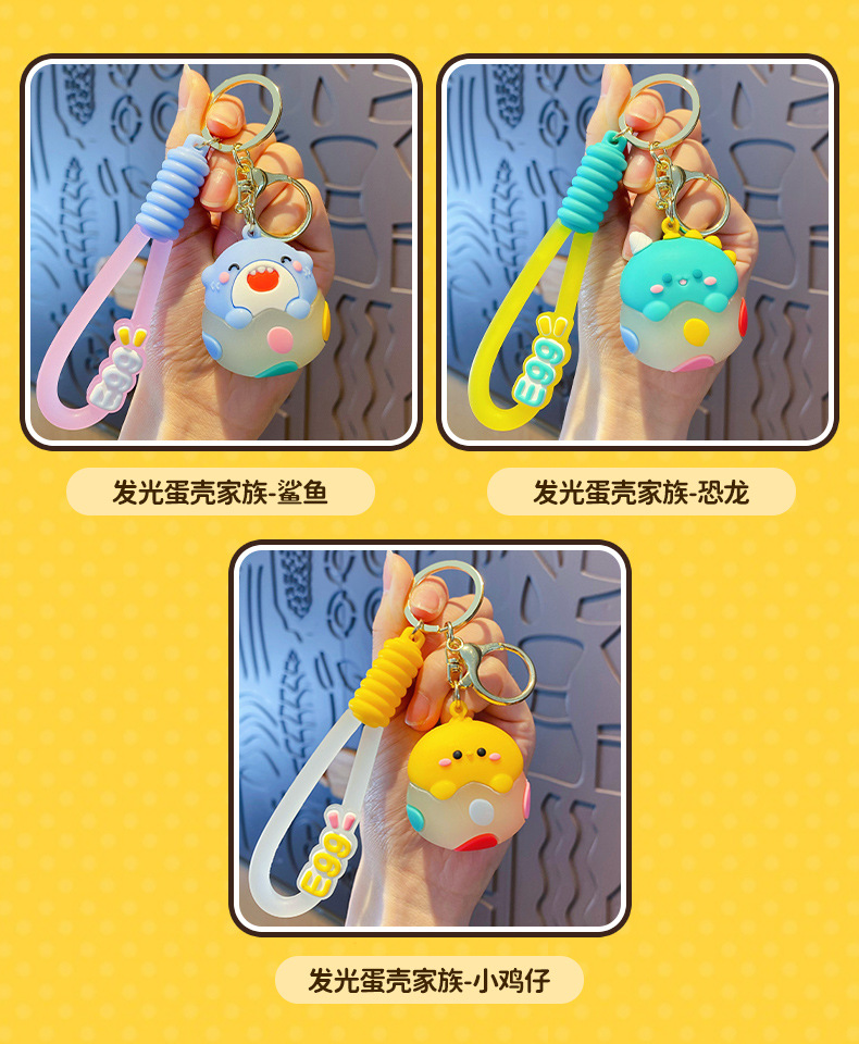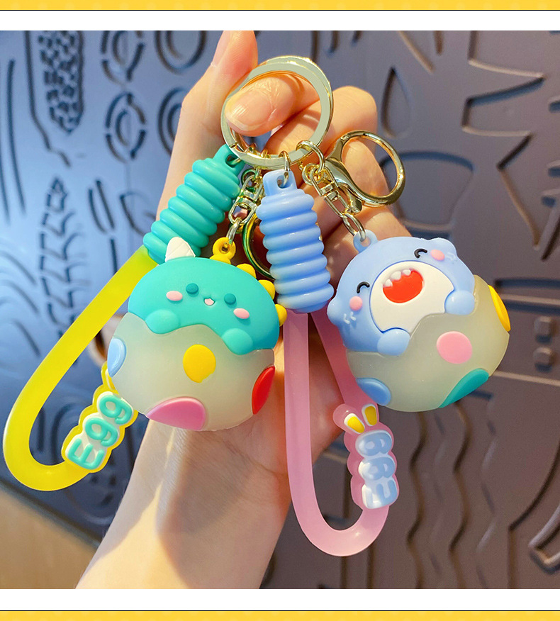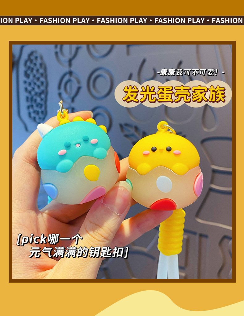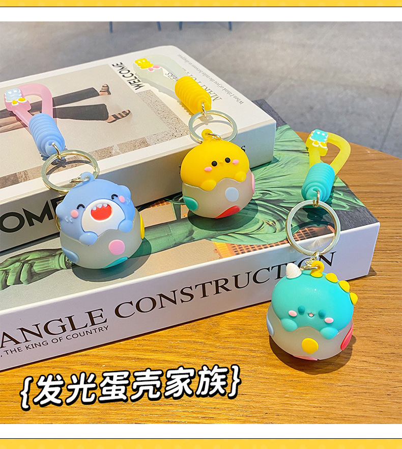 Fun cartoon glowing eggshell chick keychain pendant, cute and exquisite shark dinosaur trendy backpack ornament