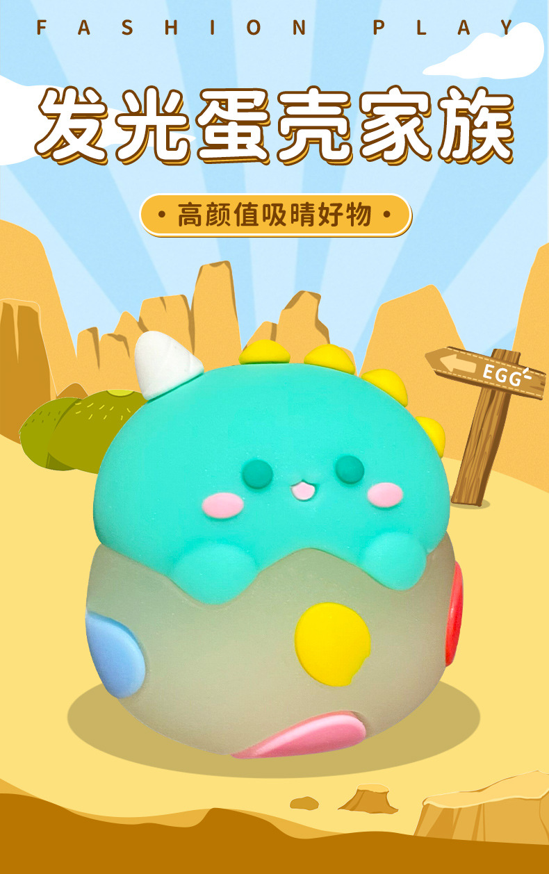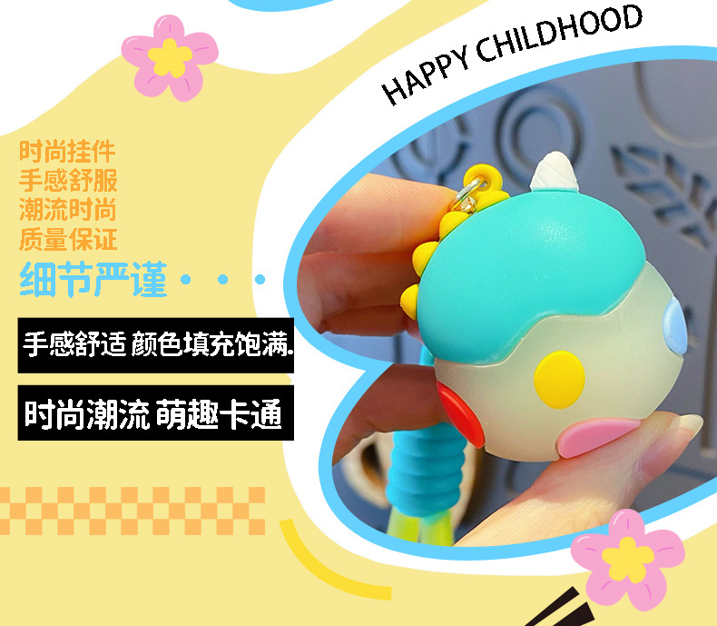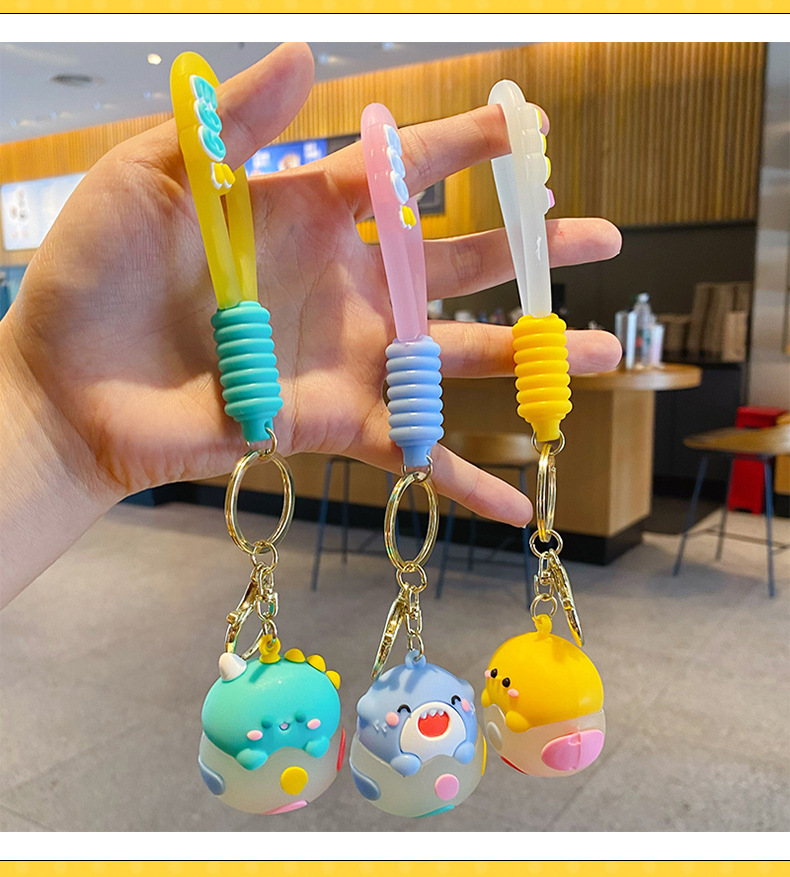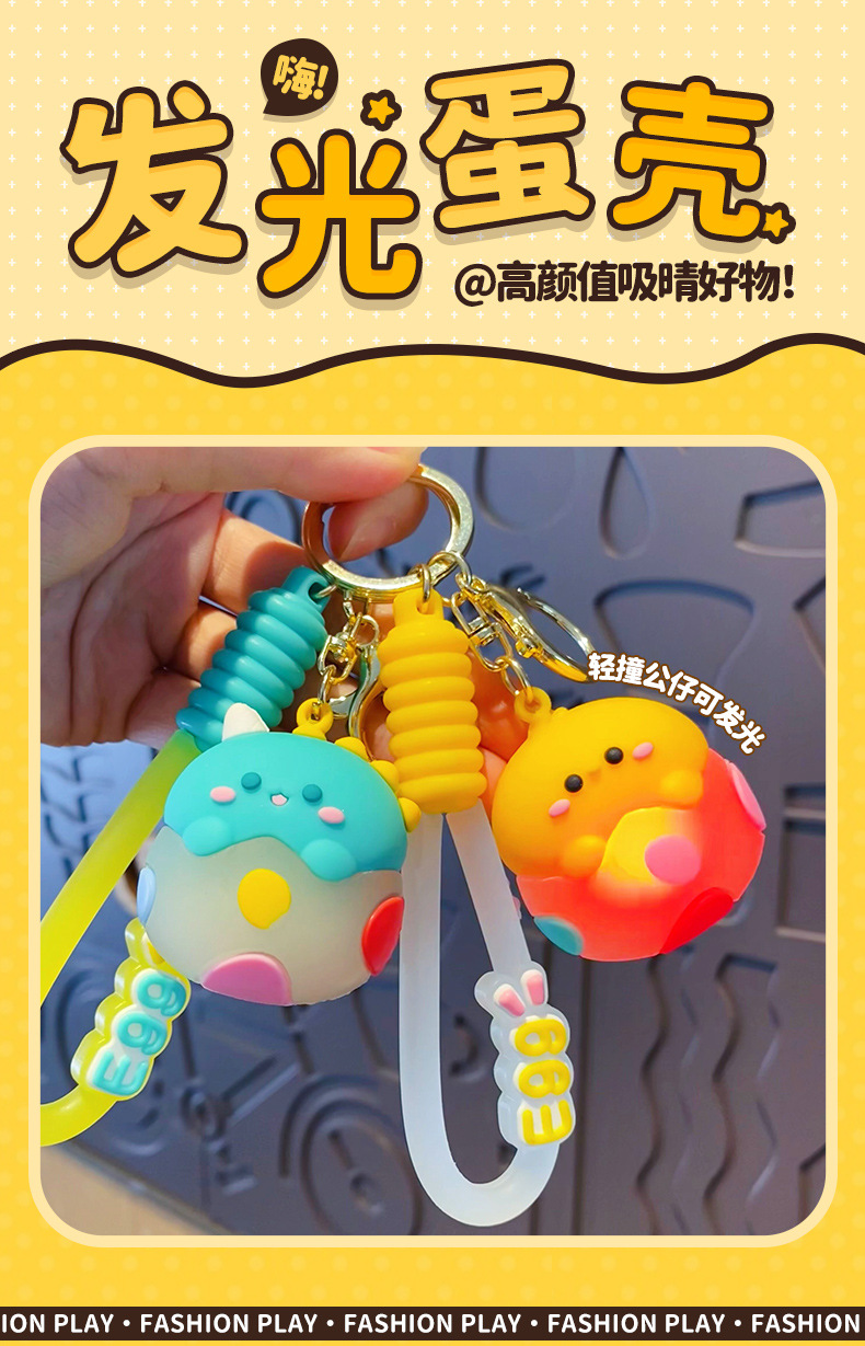 Fun cartoon glowing eggshell chick keychain pendant, cute and exquisite shark dinosaur trendy backpack ornament