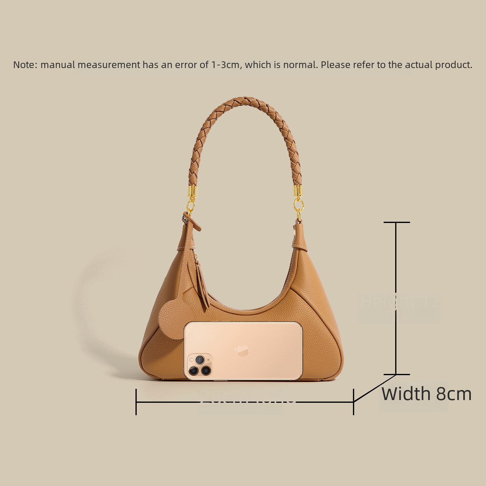 Sleek and functional, this genuine leather baguette bag features a compact design and versatile styling. Perfect for casual outings or daily errands.