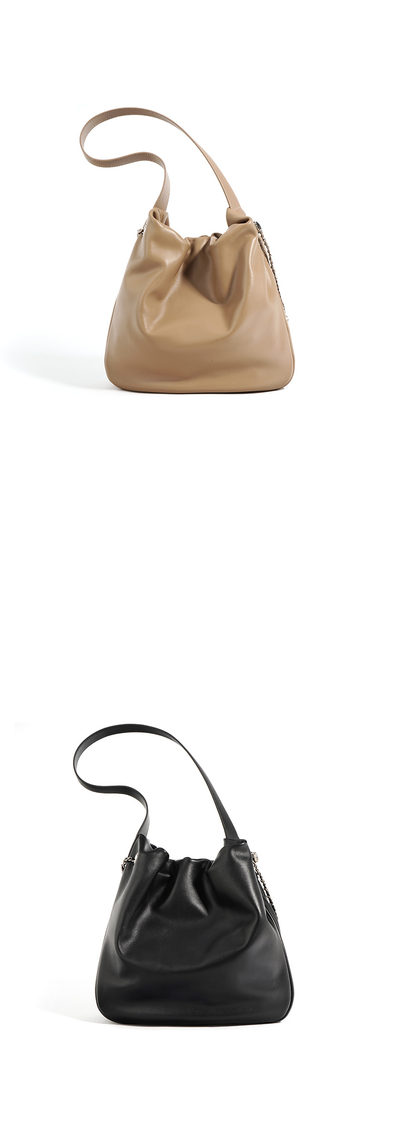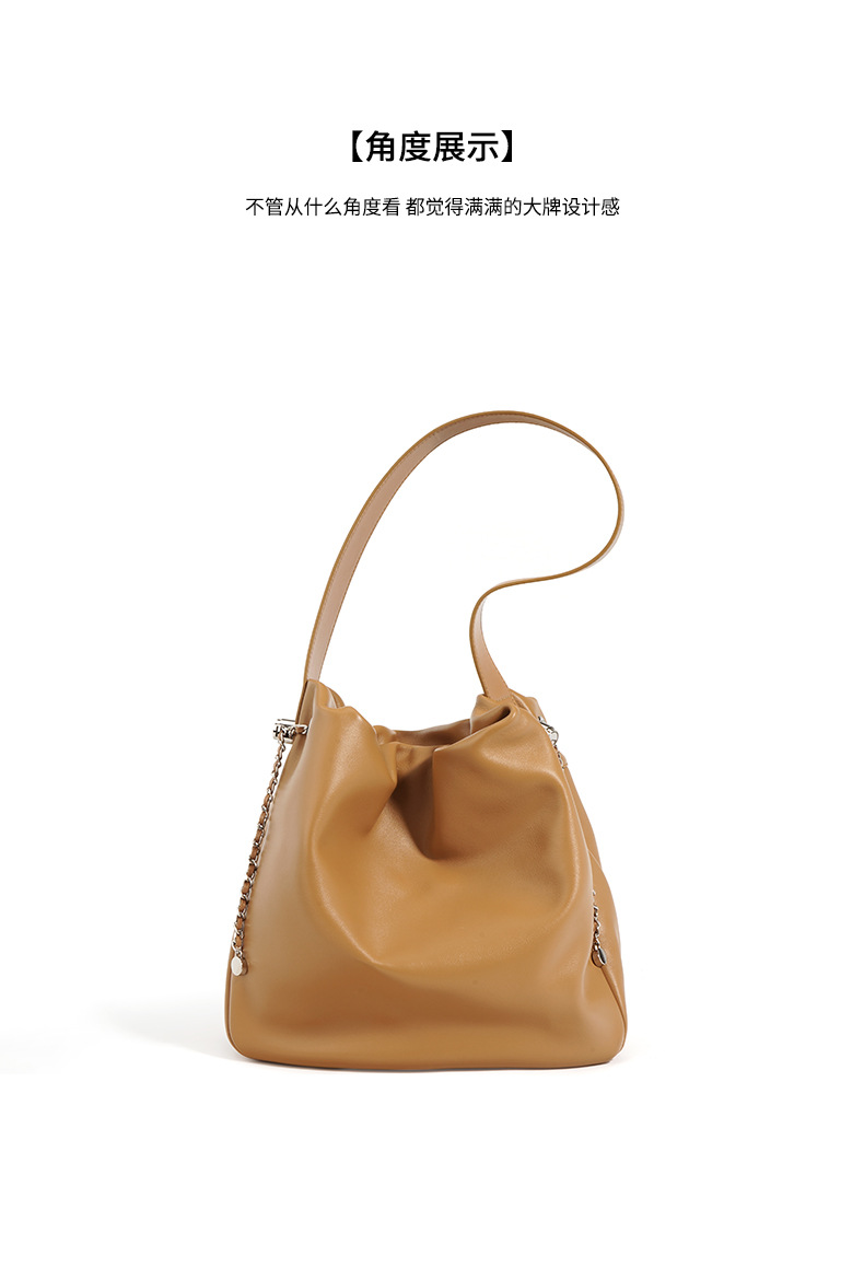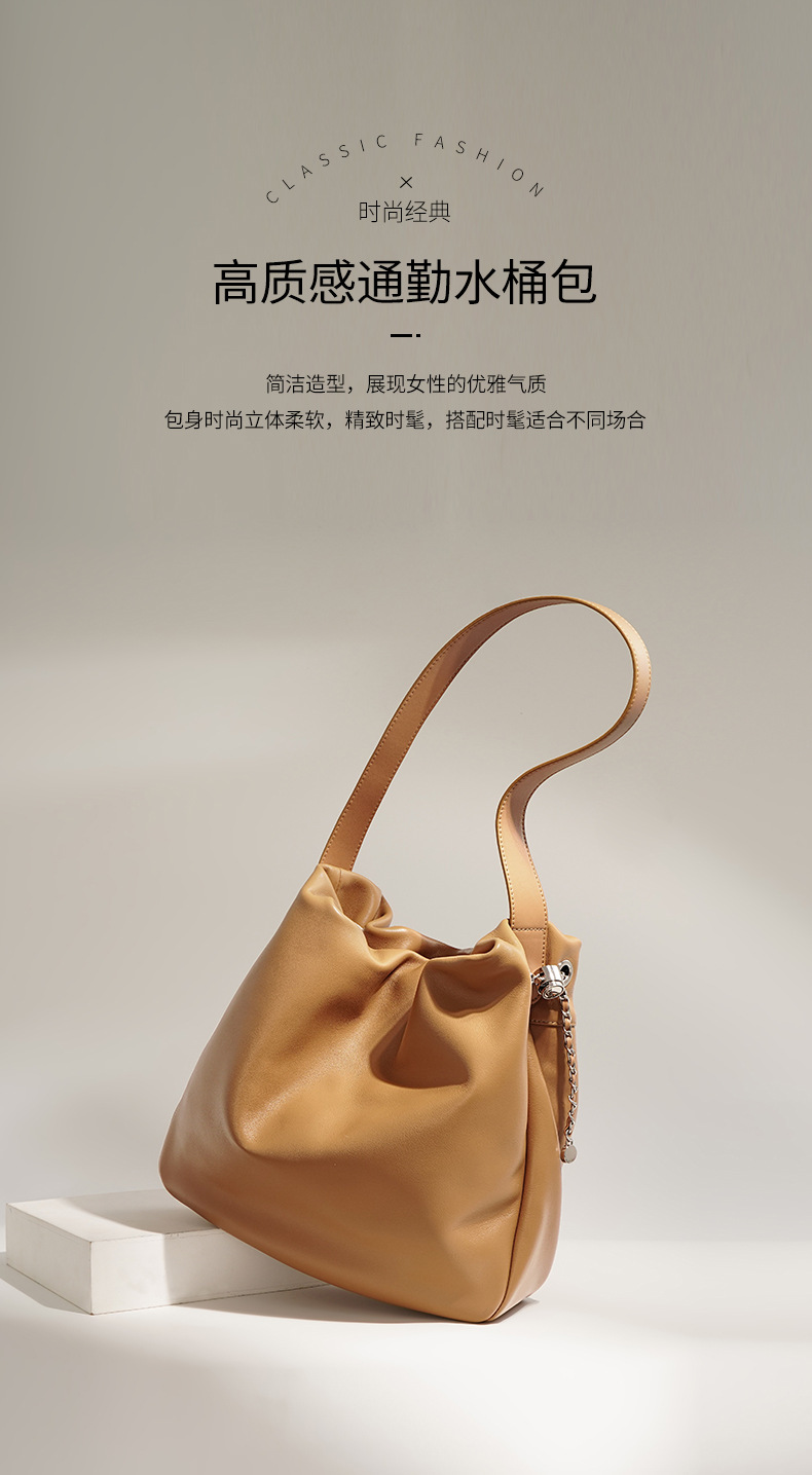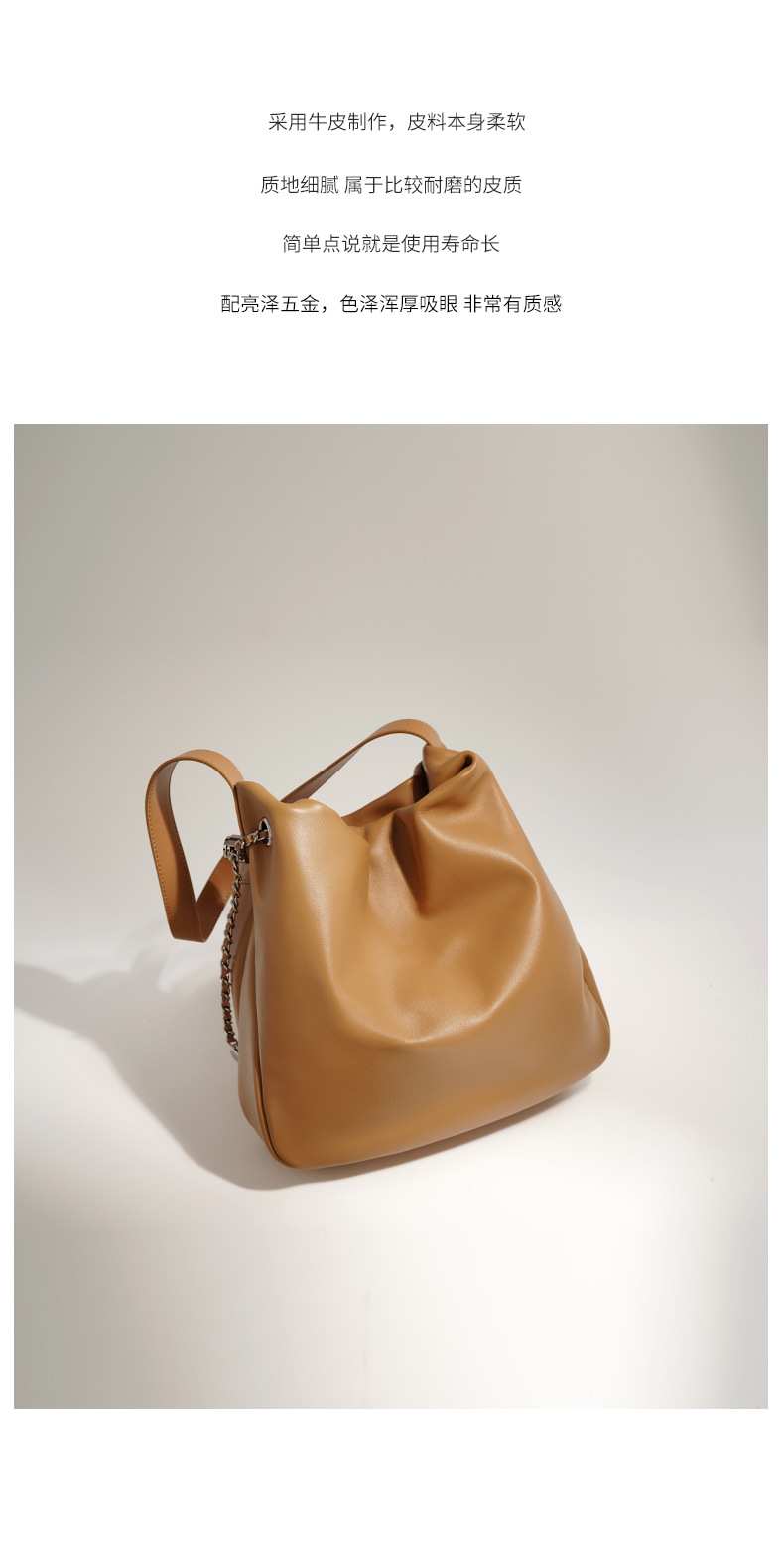 Sleek and functional, this pleated genuine leather tote bag offers large capacity and versatile styling. Perfect for commuting, travel, or daily errands.
