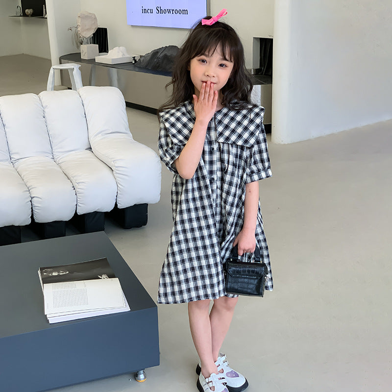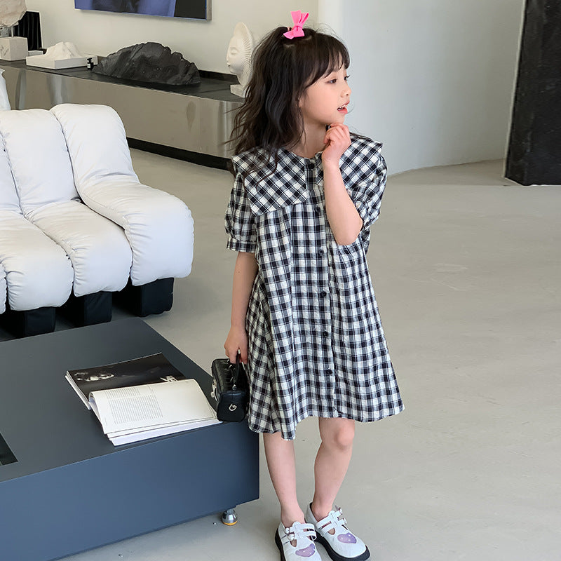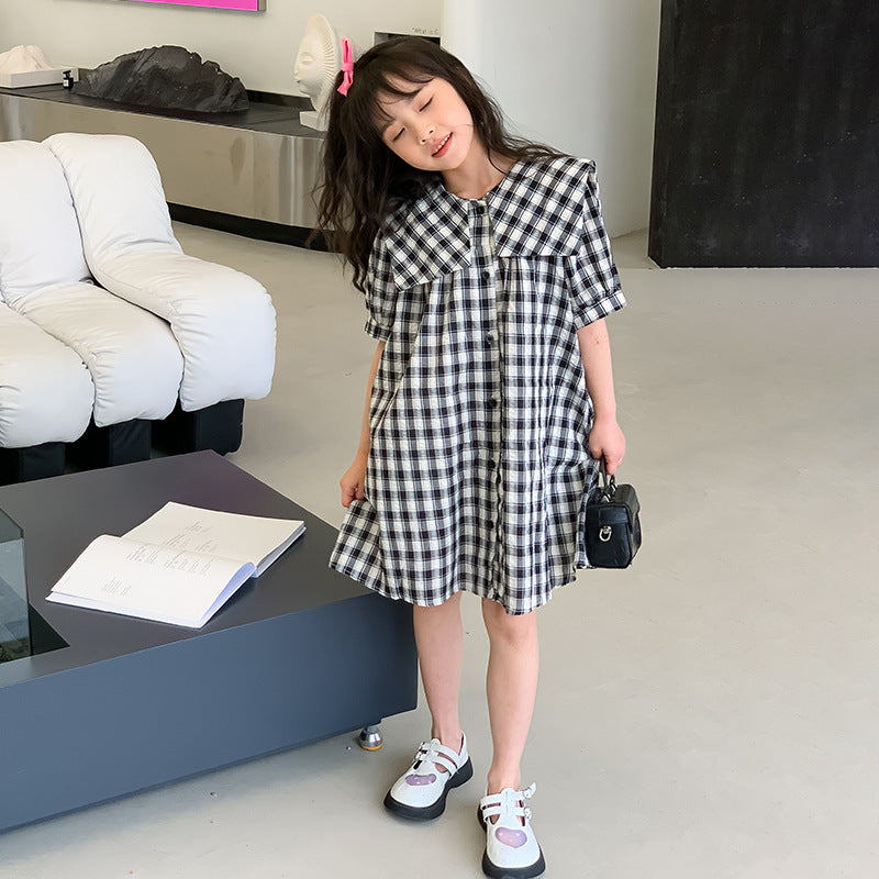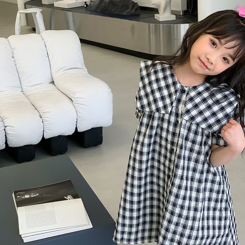 Step into the retro charm of our Black and White Checkered Dress, a stylish addition to girls' clothes in Singapore. This dress features a smart, flipped collar and a classic checkered pattern that brings a timeless elegance to any young girl's wardrobe. With its short sleeves and breathable fabric, it's perfect for staying comfortable and chic on warm days. The dress's vintage artistic flair makes it ideal for both everyday wear and more formal occasions. Delve into our collection of girls' dresses online in Singapore to discover this dress that combines the old-school cool with modern comfort, making it a must-have for the season.