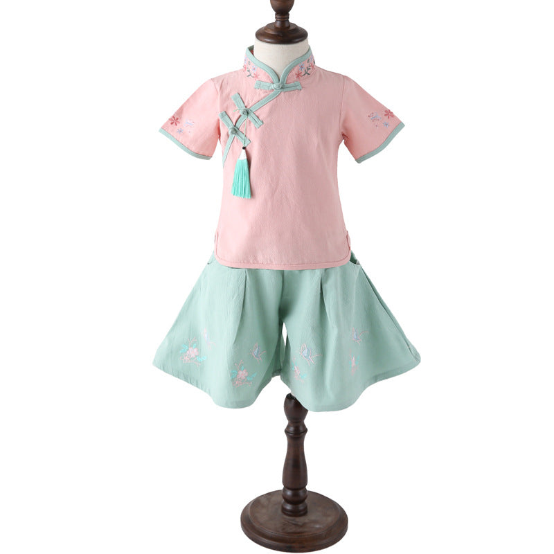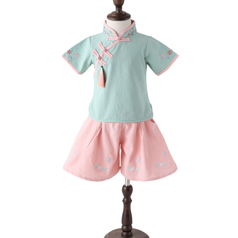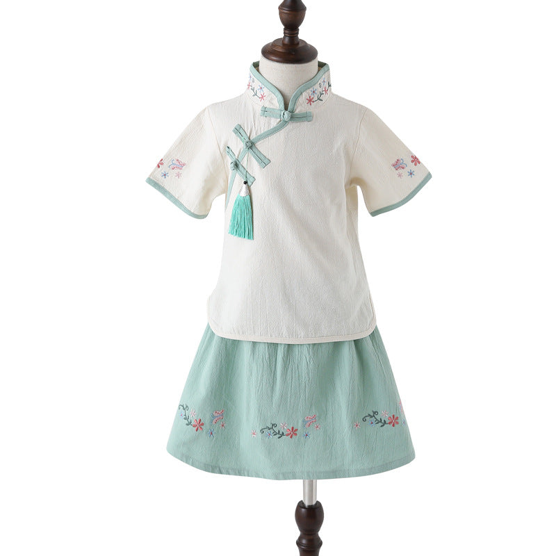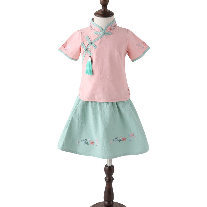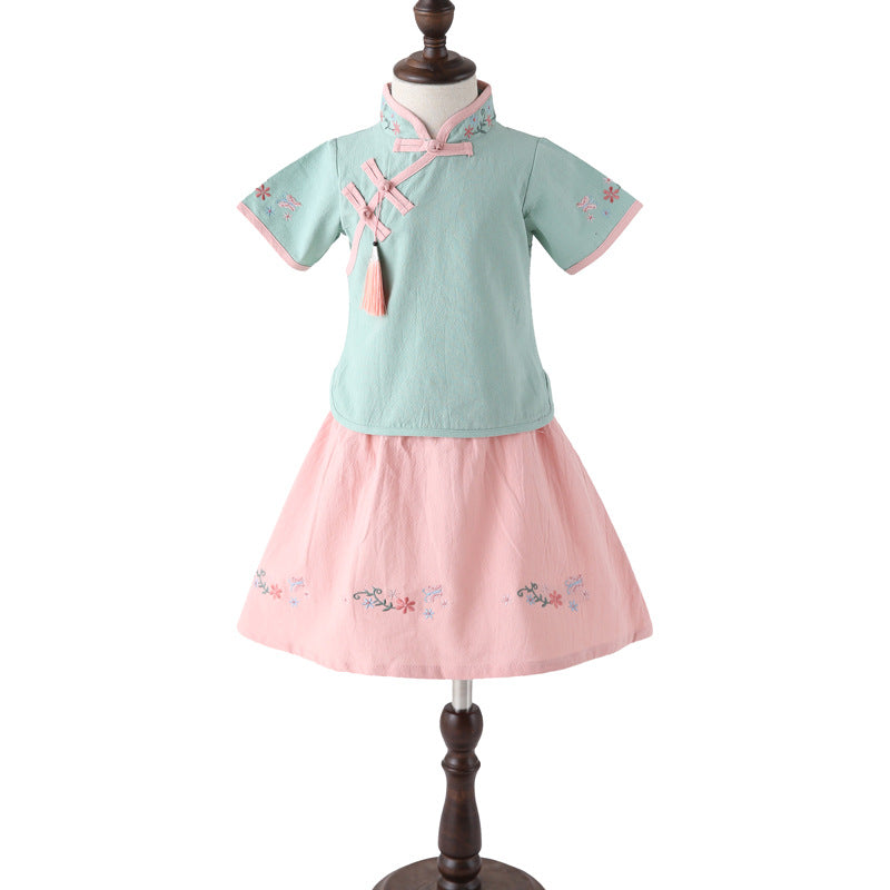 This Tang dynasty-inspired outfit features a modified Hanfu dress and a ruqun skirt, exuding a charming blend of Chinese traditional and modern fashion elements. Perfect for cultural events or special occasions, this ethnic-inspired attire captures the essence of Chinese heritage while offering comfort and style. Explore our collection of ethnic-inspired children's clothing online in Singapore and embrace the beauty of traditional fashion for your little princess!