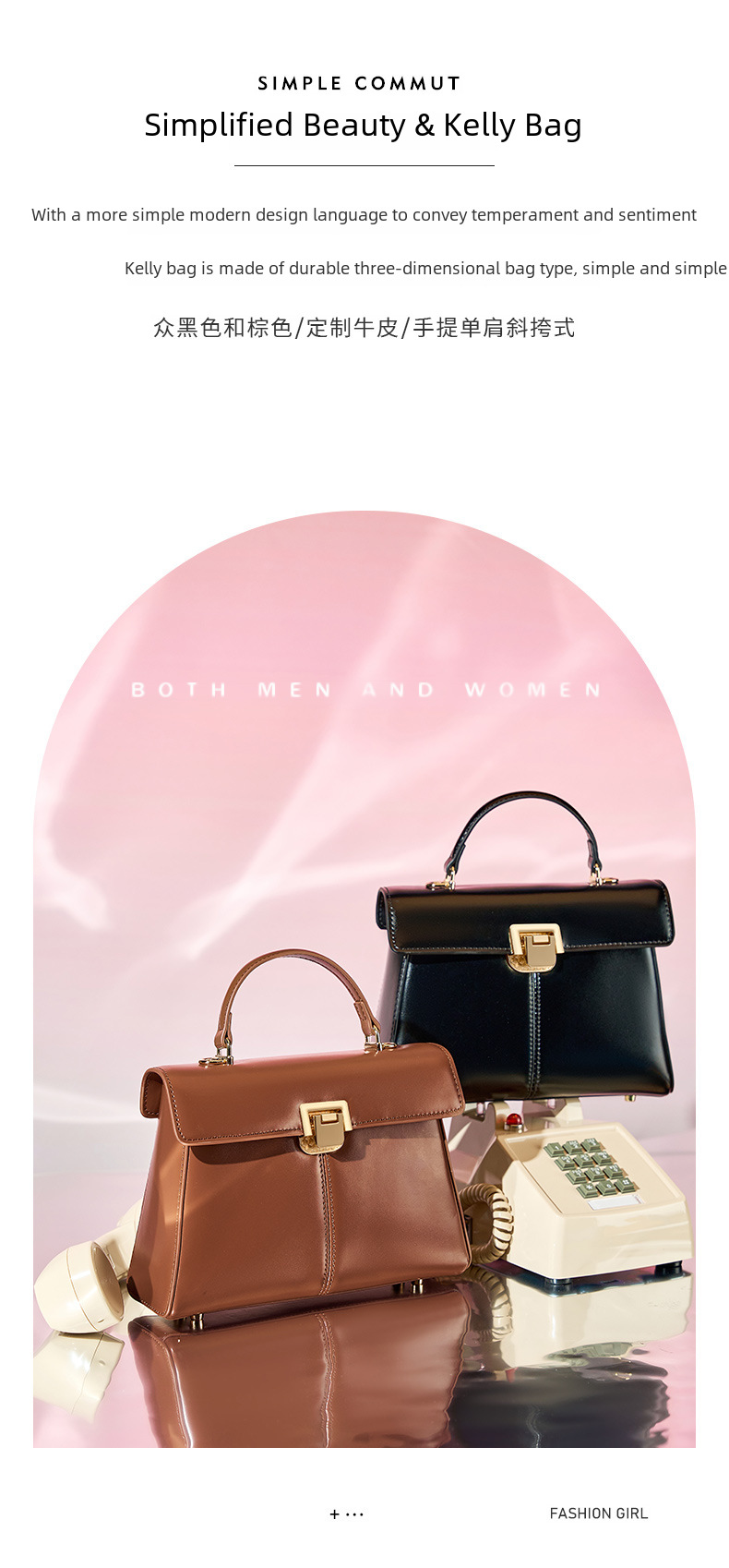 Horseshoe Buckle Genuine Leather Kelly Bag