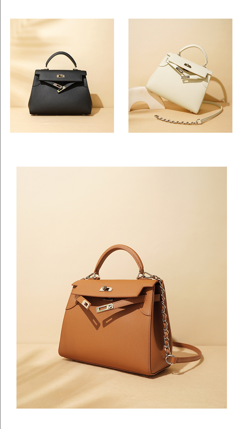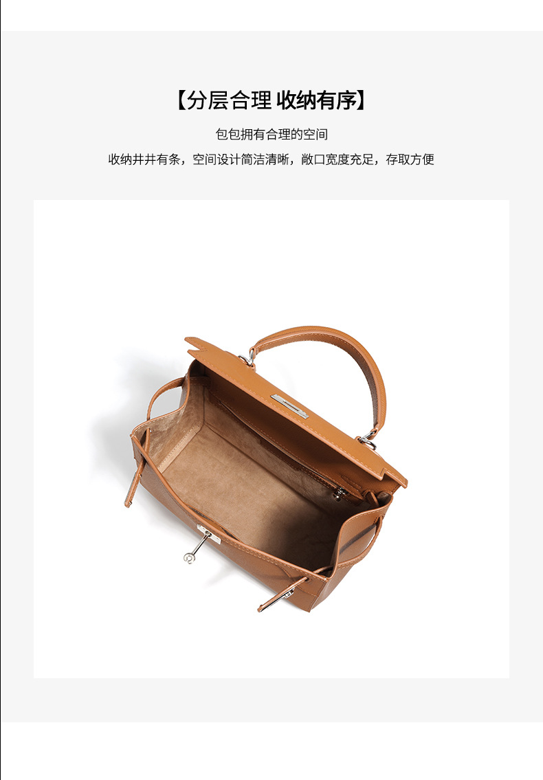 Inspired by timeless elegance, this Kelly genuine leather crossbody bag offers large capacity and versatile functionality. Perfect for commuting, travel, or casual outings.