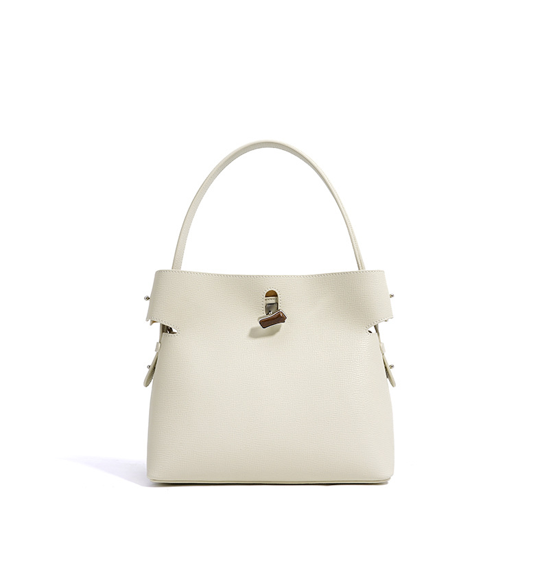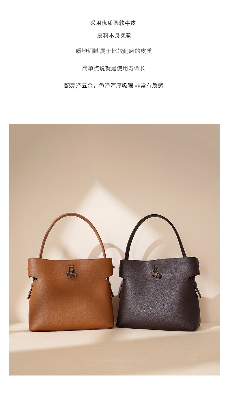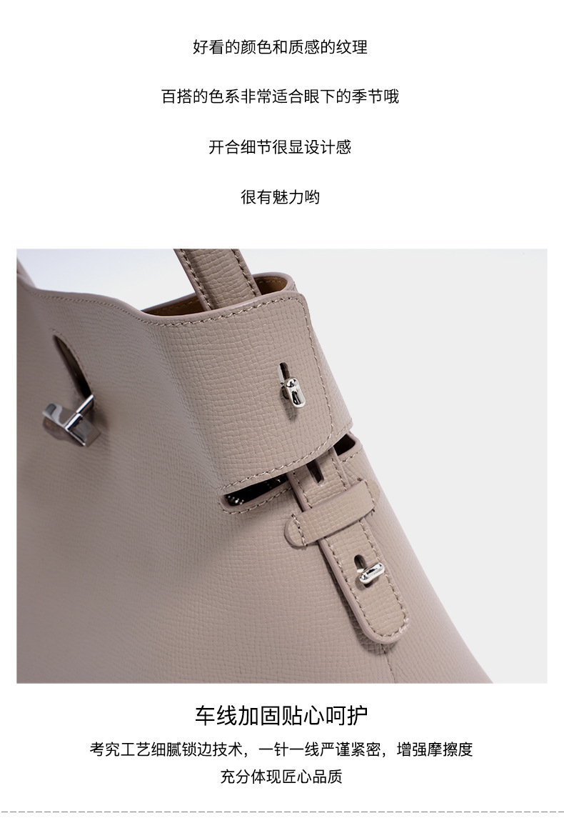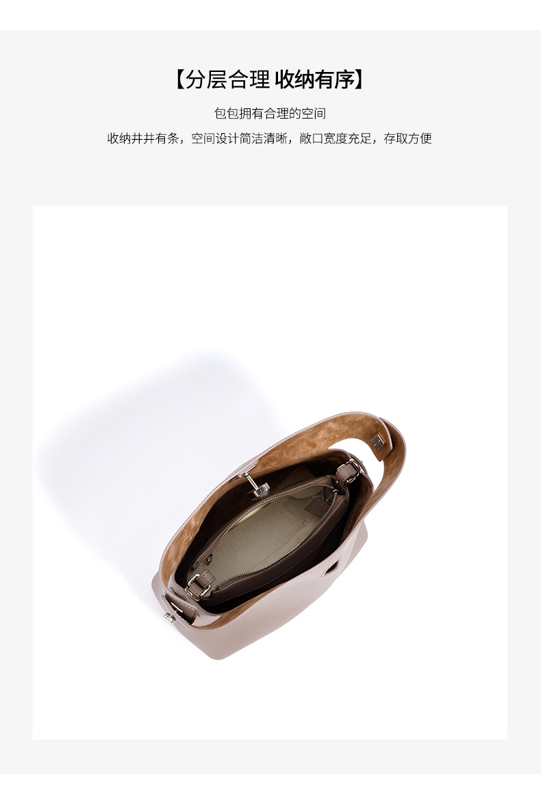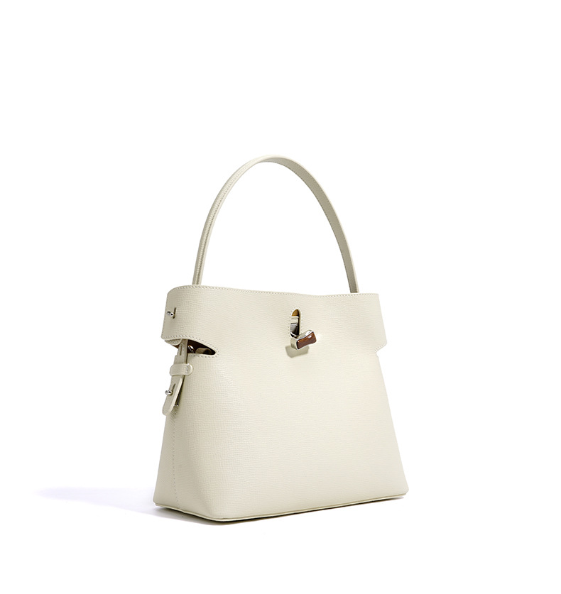 Korean-Style Bamboo Genuine Leather Bucket Bag