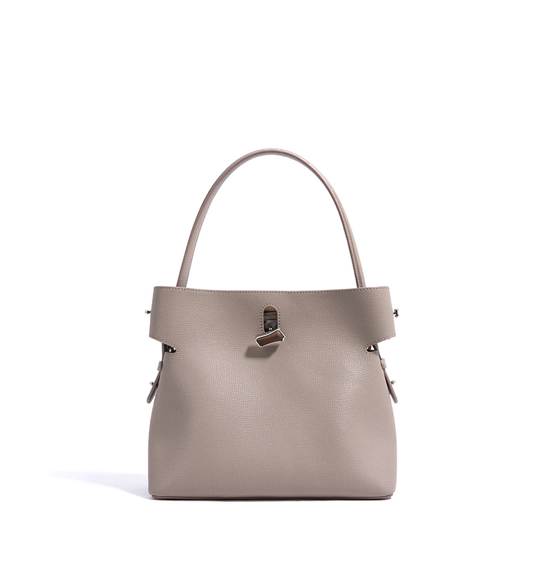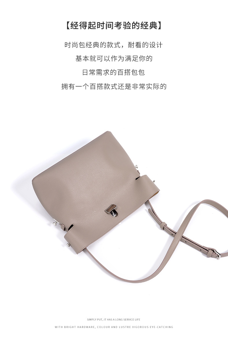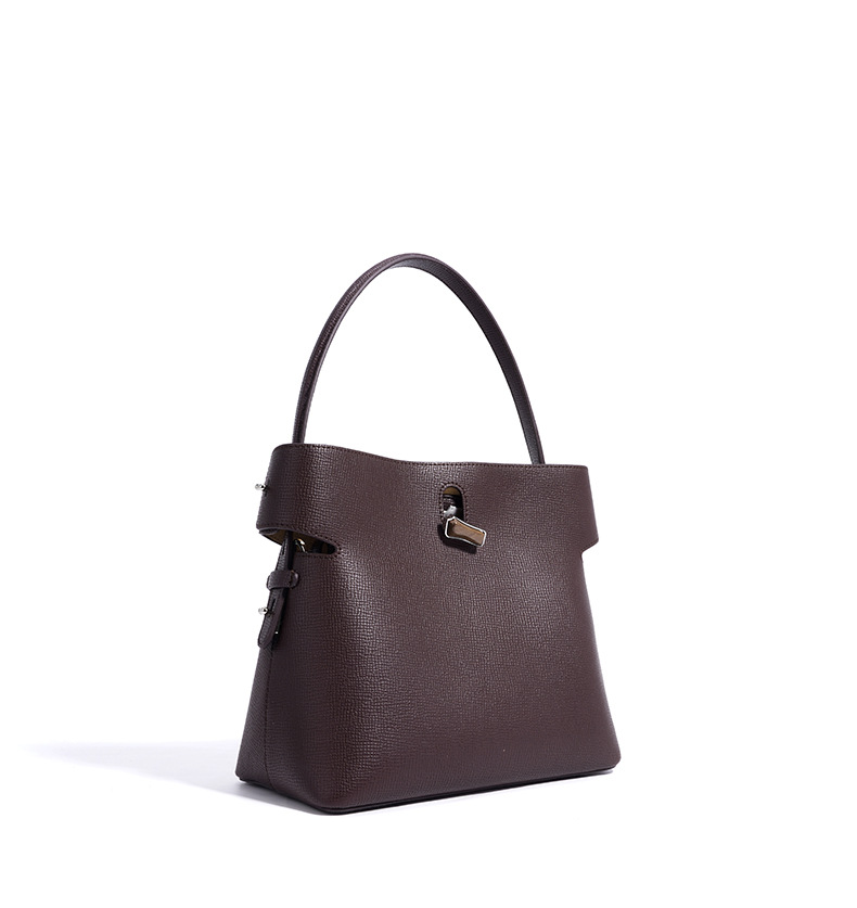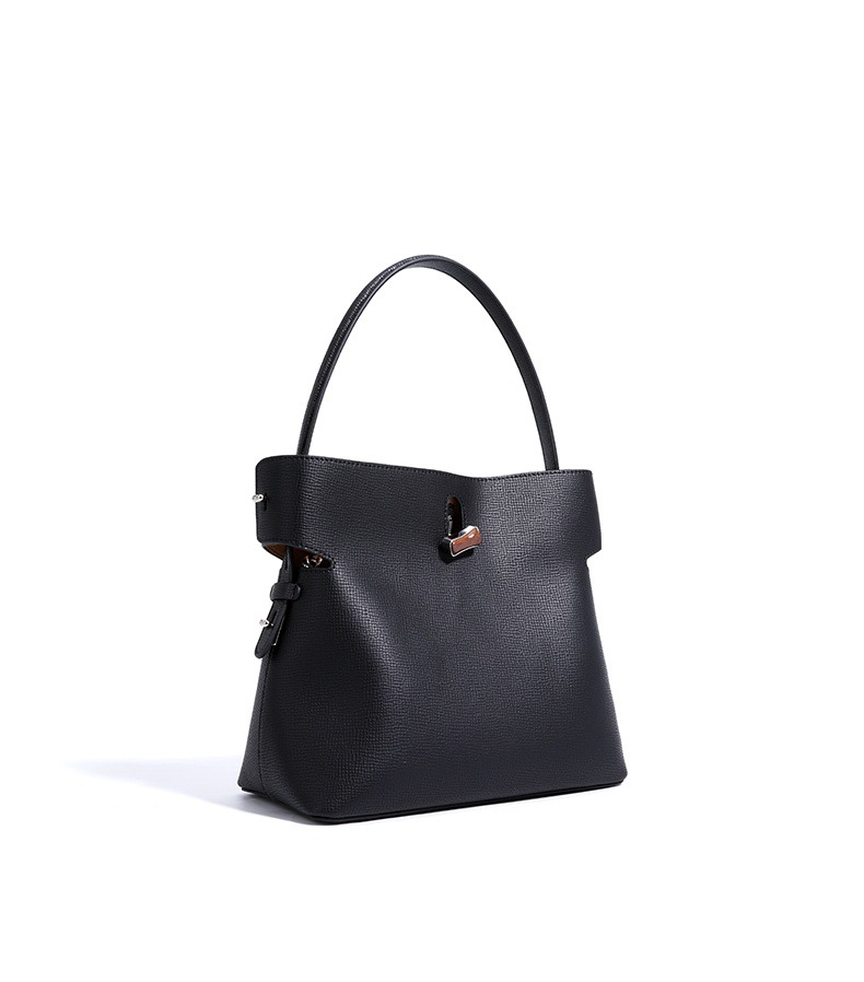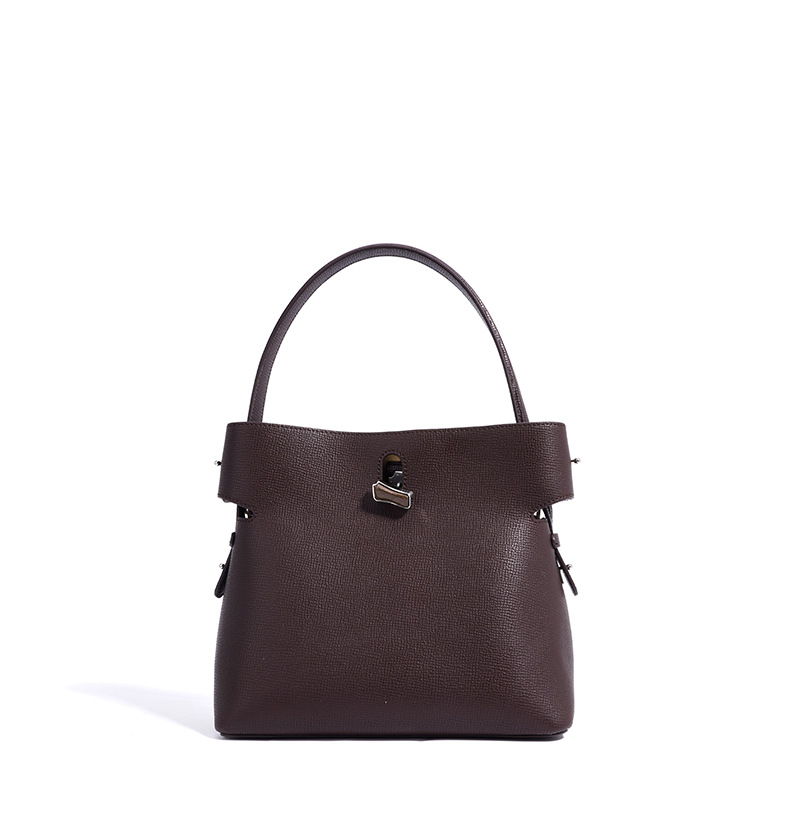 Korean-Style Bamboo Genuine Leather Bucket Bag