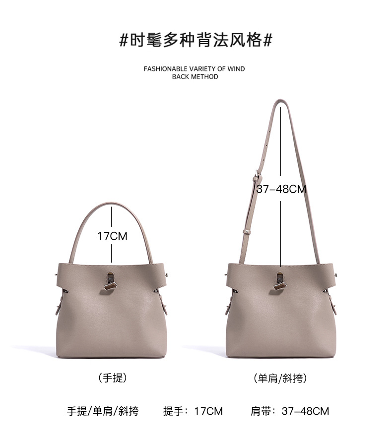 Inspired by Korean fashion, this genuine leather bucket bag features bamboo accents and a large capacity design. Perfect for daily use, travel, or casual outings.