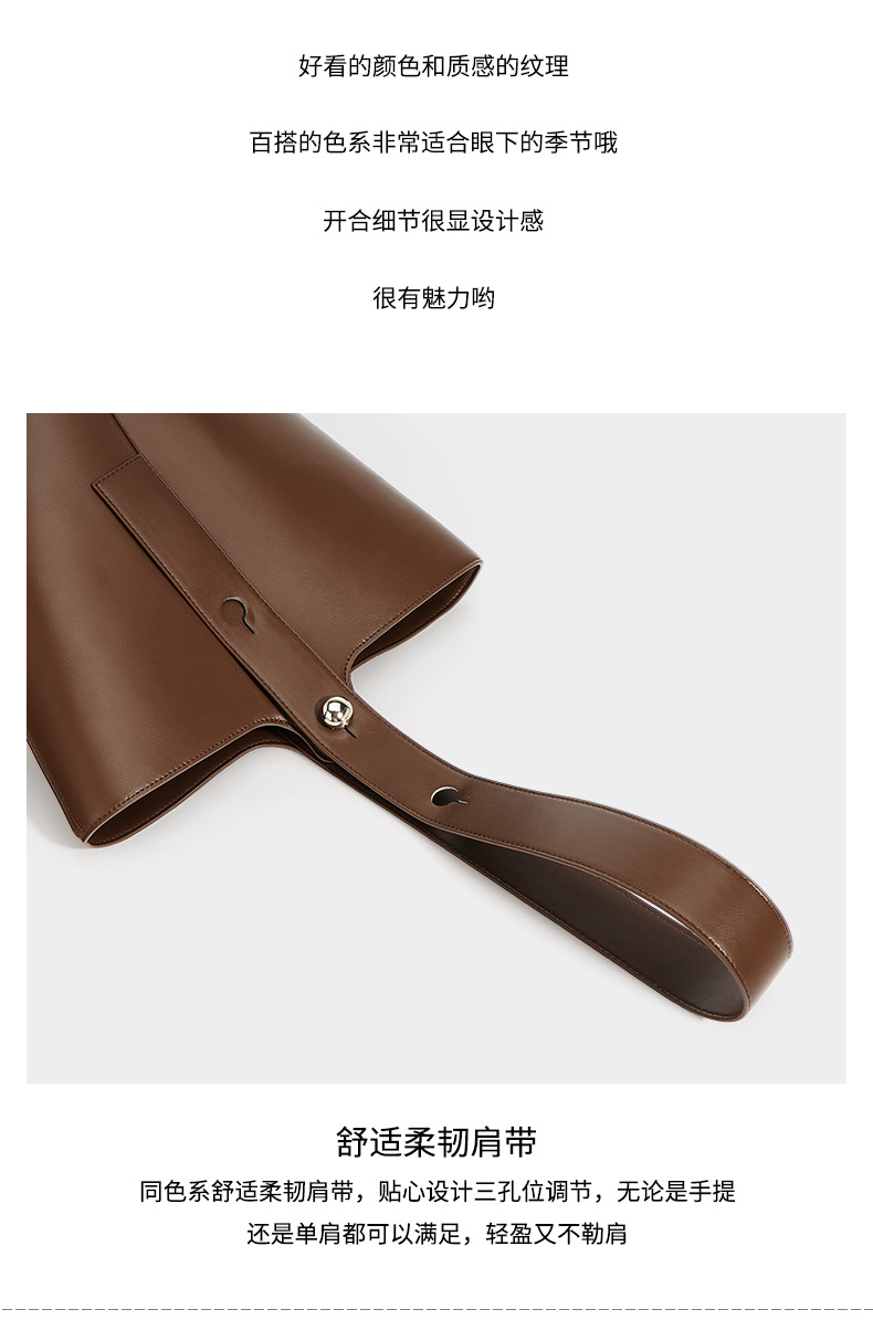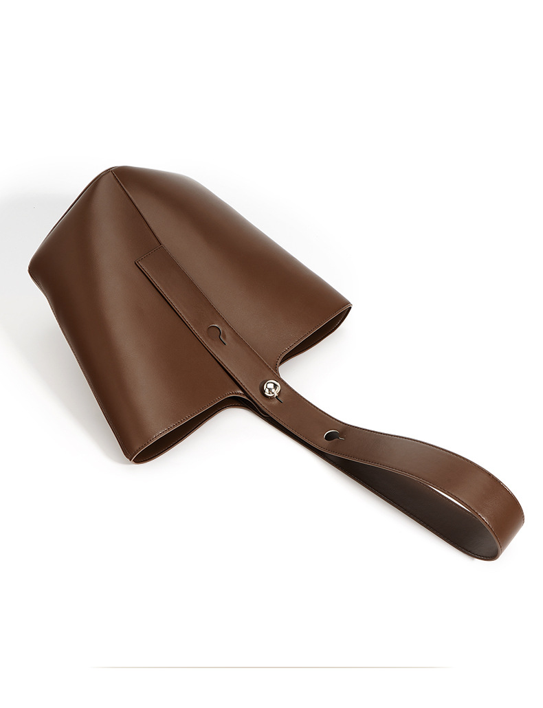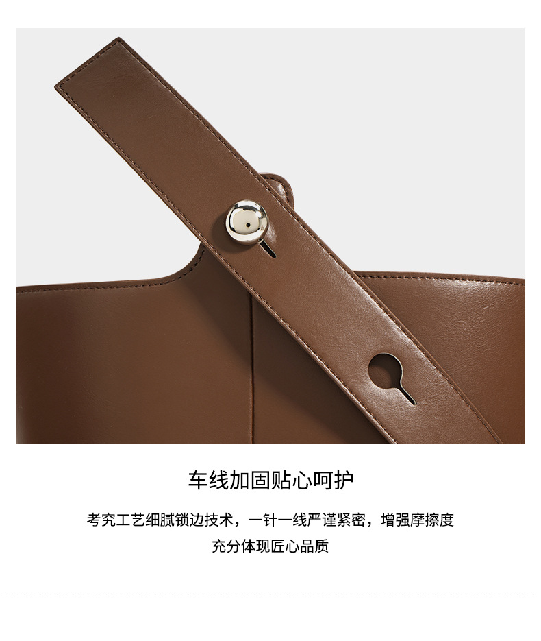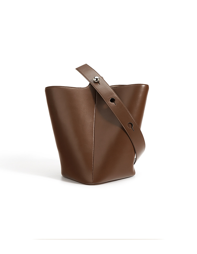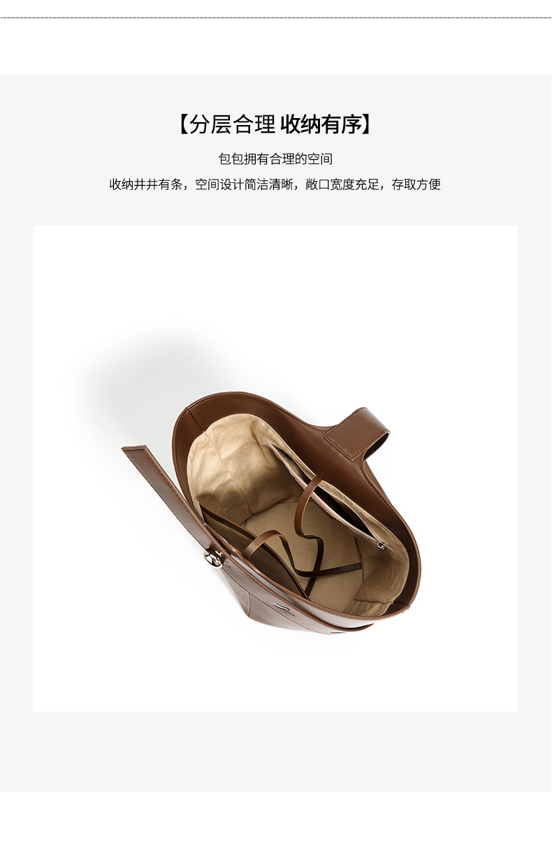Inspired by Korean fashion, this retro genuine leather bucket bag features a large capacity and versatile design. Perfect for casual outings or travel.