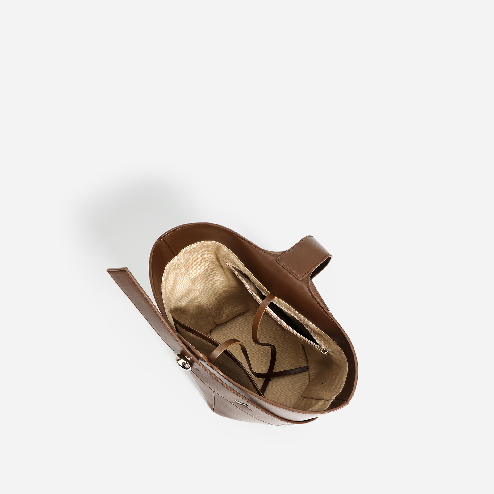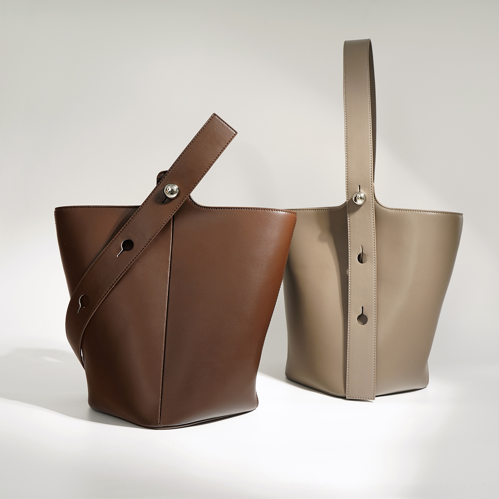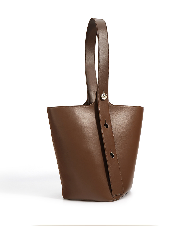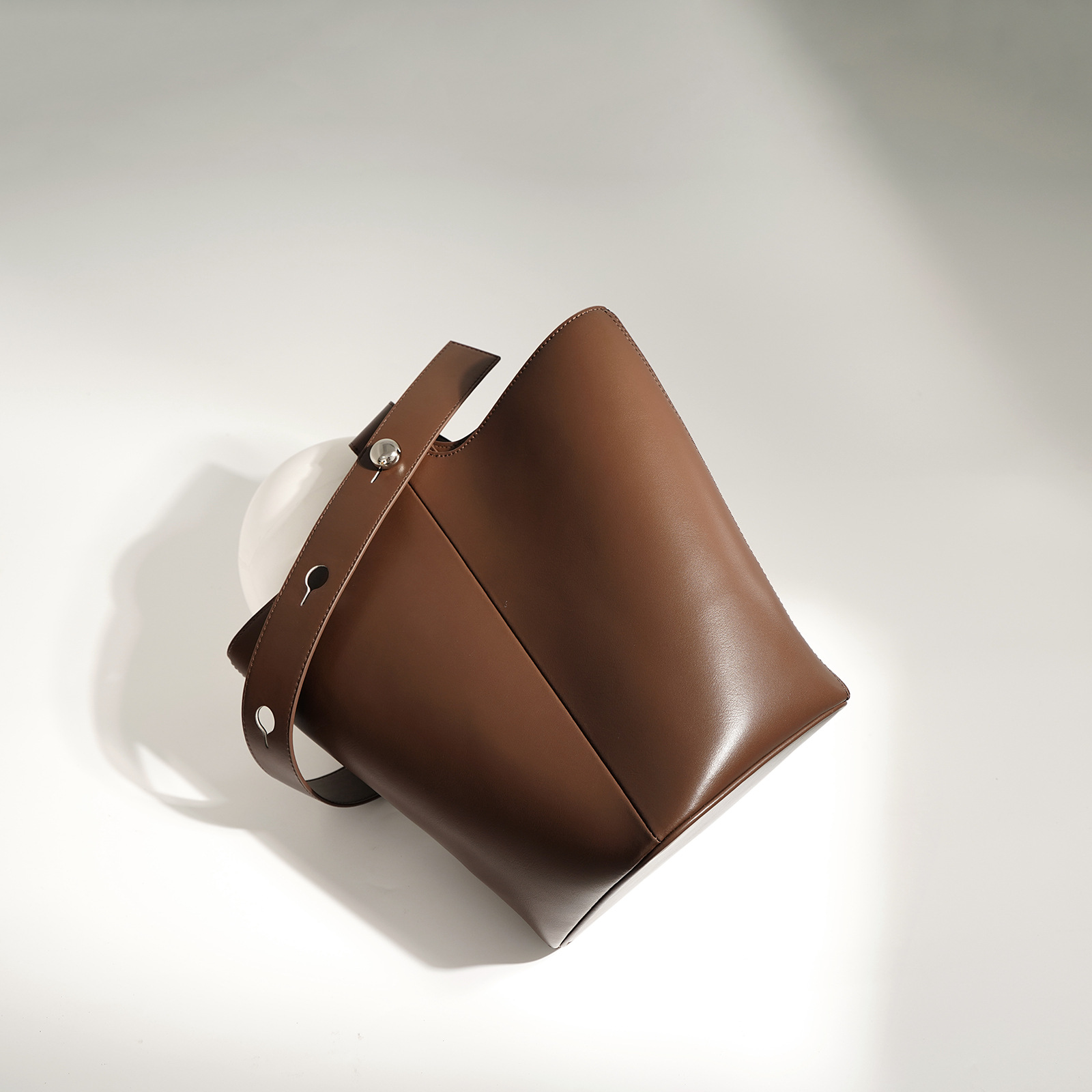 Inspired by Korean fashion, this retro genuine leather bucket bag features a large capacity and versatile design. Perfect for casual outings or travel.