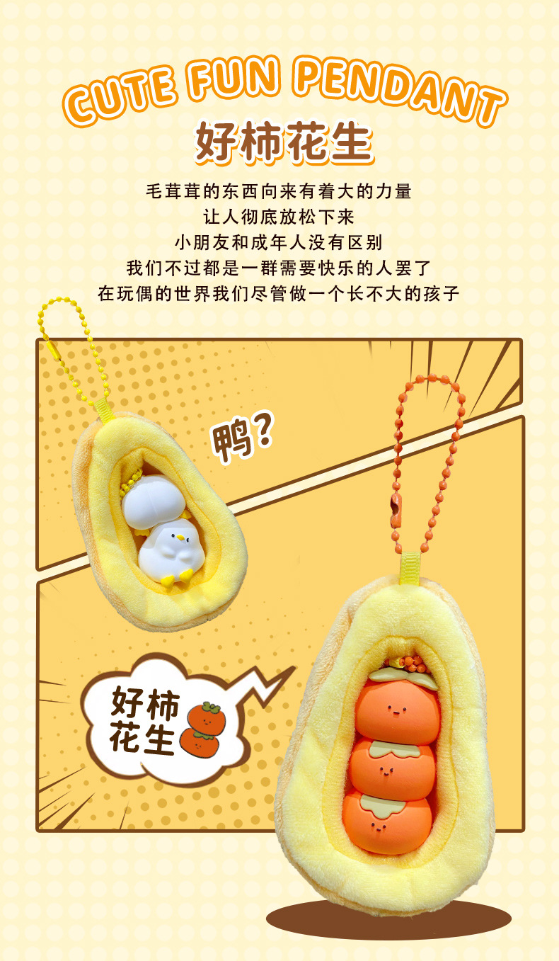 Brighten your day with the Good Persimmon Duck Keychain! This detachable plush pendant is ideal for car keys, backpacks, and as a delightful gift for men and women.