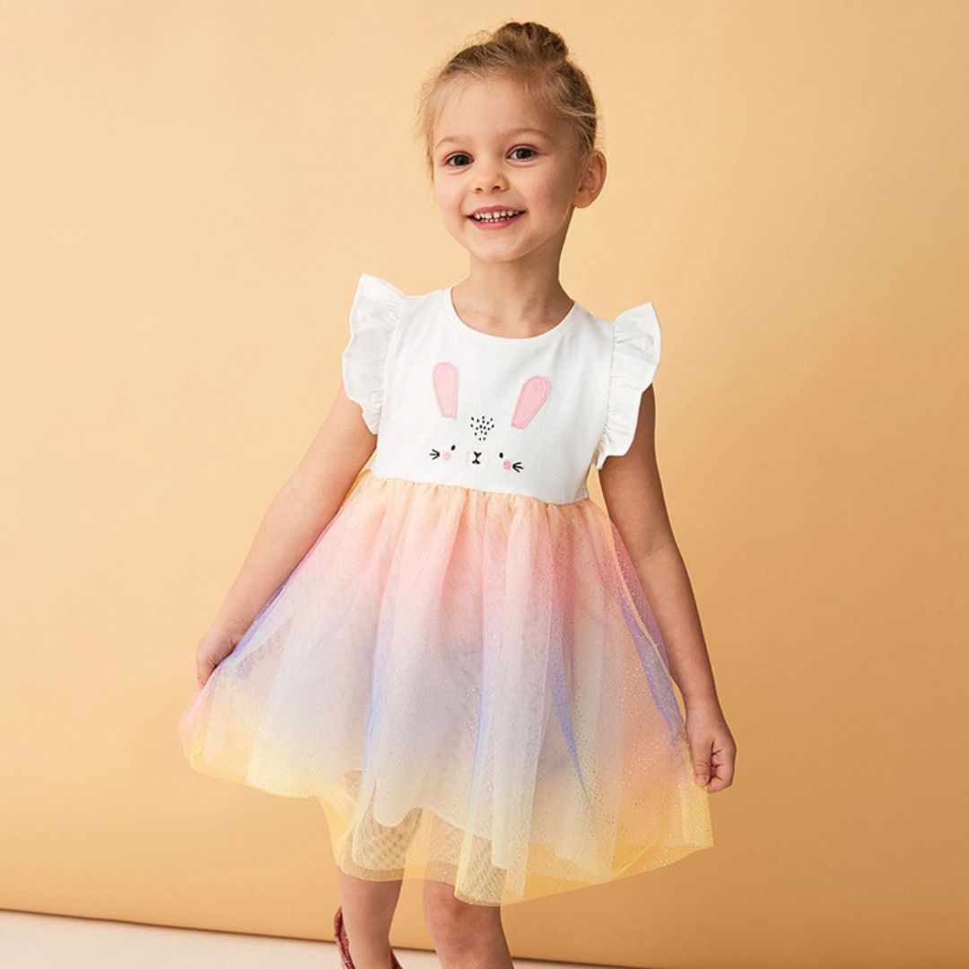 Dress your little princess in this adorable cotton dress featuring delicate net fabric and cute bunny in front. Perfect for adding a touch of fairy-like charm to her wardrobe, this dress is both comfortable and stylish. Let her shine like a little fairy in this enchanting outfit. Check out more girls' dresses online in Singapore to find similar charming pieces!