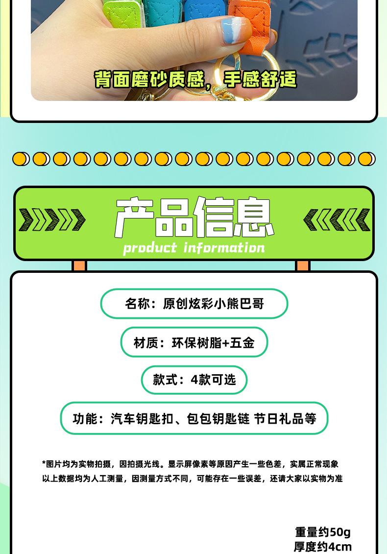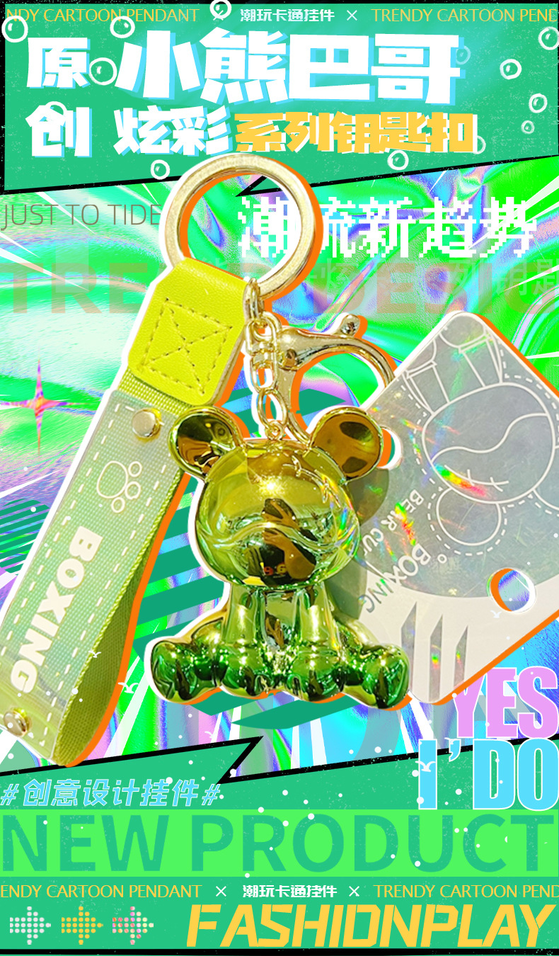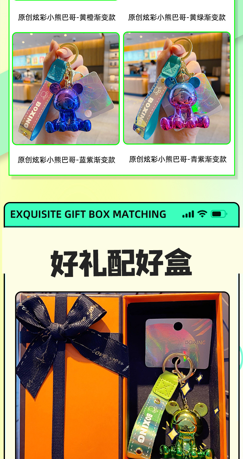 Resin Colorful Bear Bago Keychain, Fashionable and Exquisite Couple Keychain, Backpack Pendant