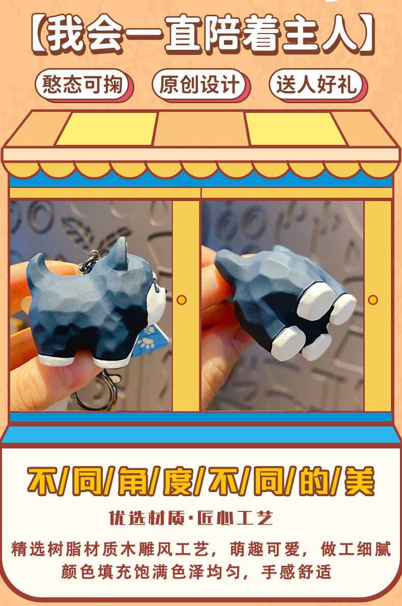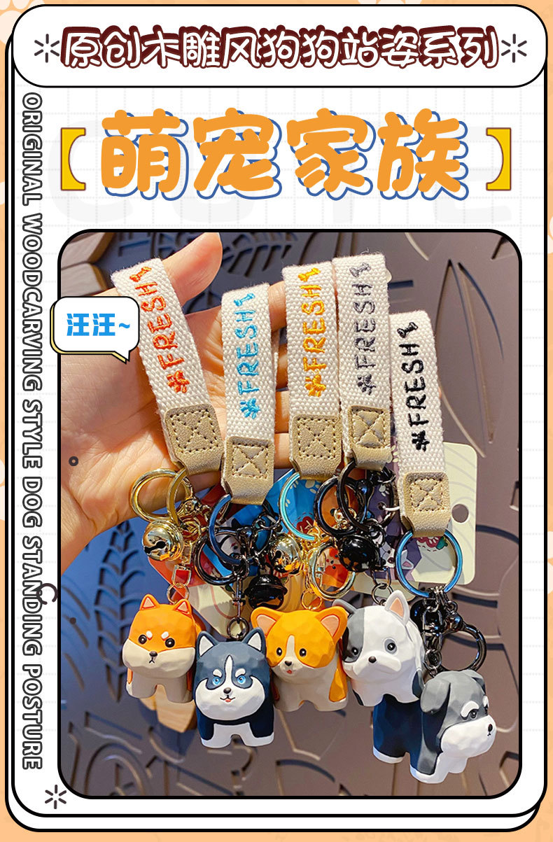 Resin standing posture wooden carving dog keychain, cute and exquisite female creativity, two Ha keychain bag pendant