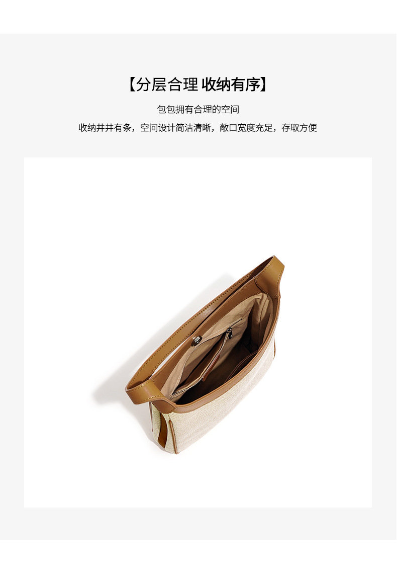 A stylish blend of retro and modern, this patchwork genuine leather bucket bag features contrasting colors and a large capacity. Perfect for commuting or casual outings.