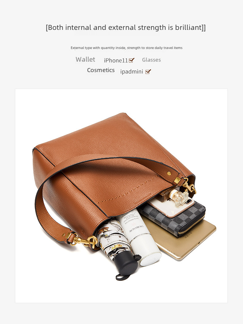 Large Capacity Genuine Leather Bucket Bag