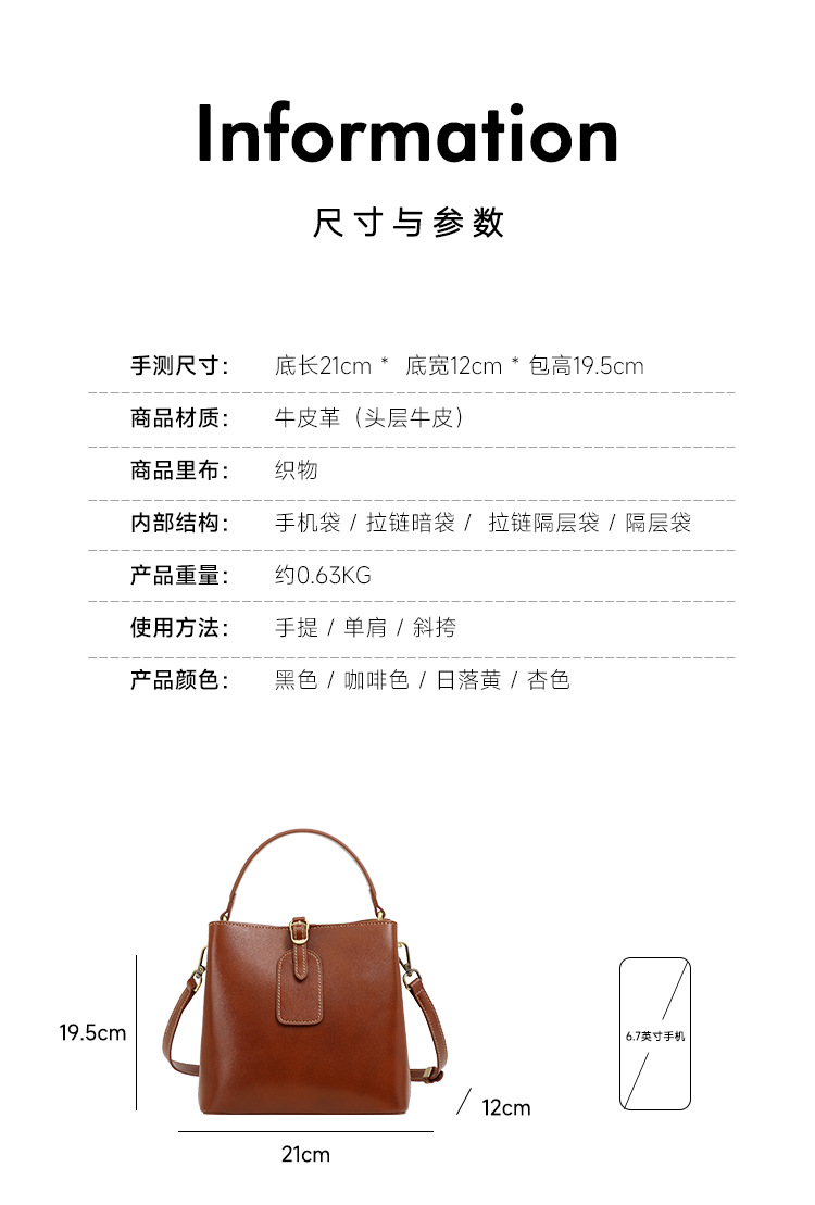 Stay elegant with the Luxe Genuine Leather Bucket Bag. Designed with spacious compartments and a sleek finish, this bag is perfect for work, shopping, or casual outings.