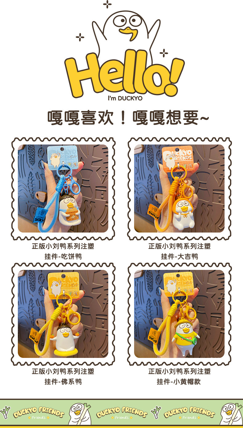 Celebrate fun with the Xiao Liu Cake Duck Keychain! This injection-molded design is ideal for students and couples, making backpacks trendy and playful.