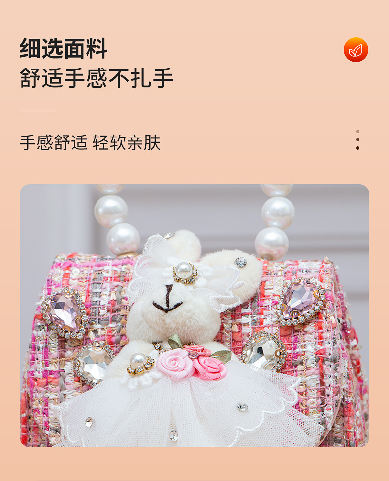 Adorned with playful plushed bunny designs and faux pearl embellishments, this mini cross-body bag adds a touch of whimsy to any outfit. Perfect for carrying small essentials, it's ideal for outings and special occasions. A top choice for parents and children seeking trendy cross-body bags for kids in Singapore, this bag combines adorable design with practical functionality, making it a must-have for stylish kids.