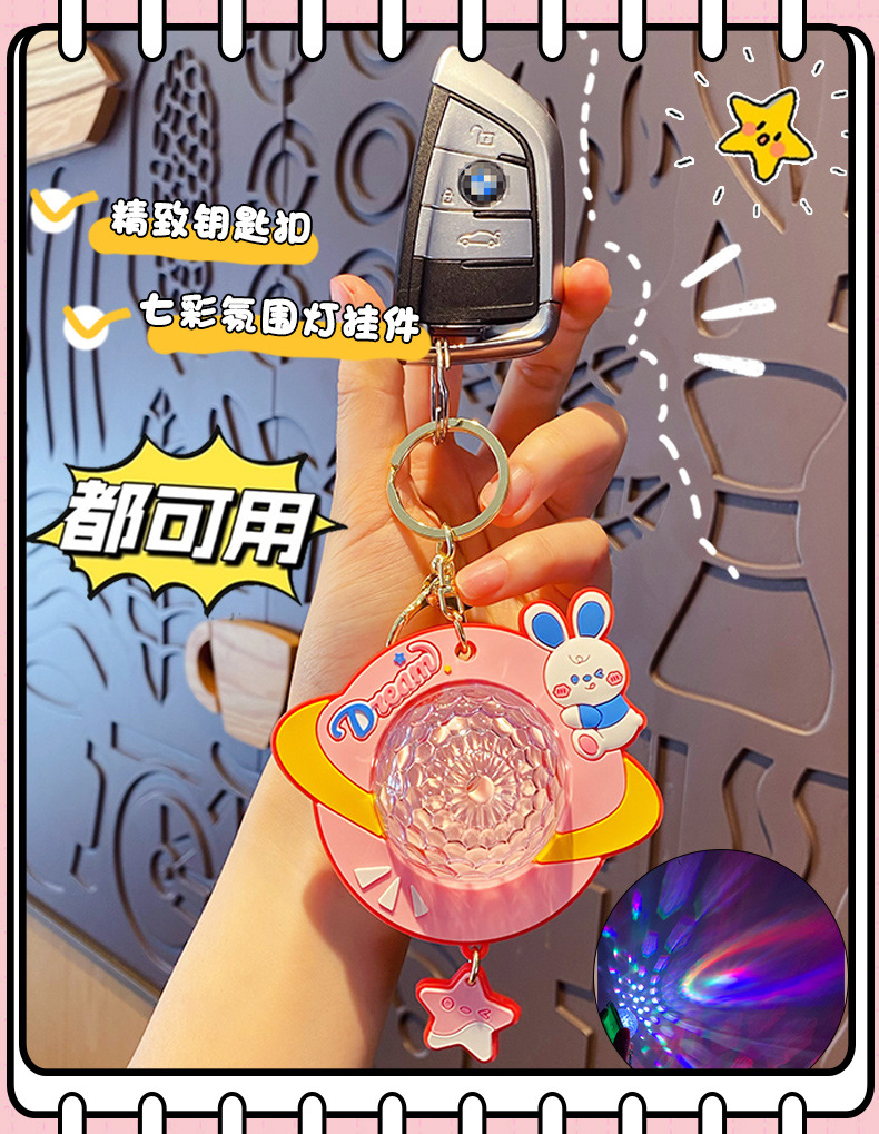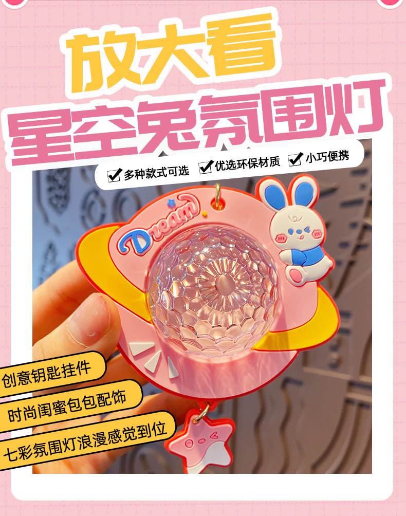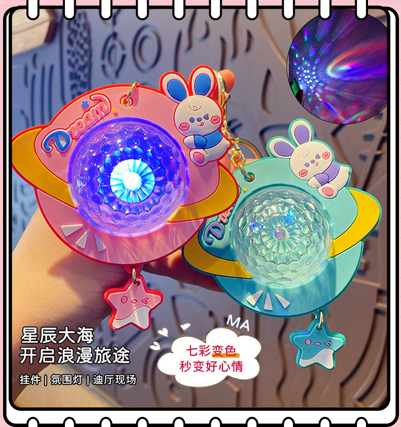 Illuminate your style with the Starry Sky Rabbit Keychain! This creative design features a roaming space atmosphere light, perfect for car keys or backpacks.