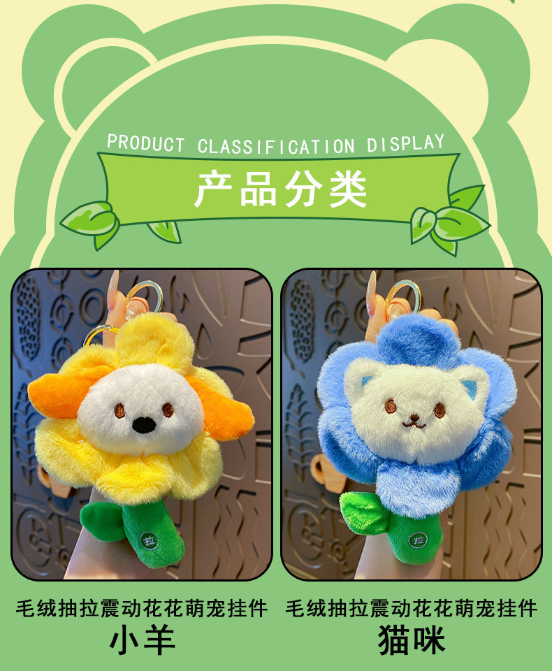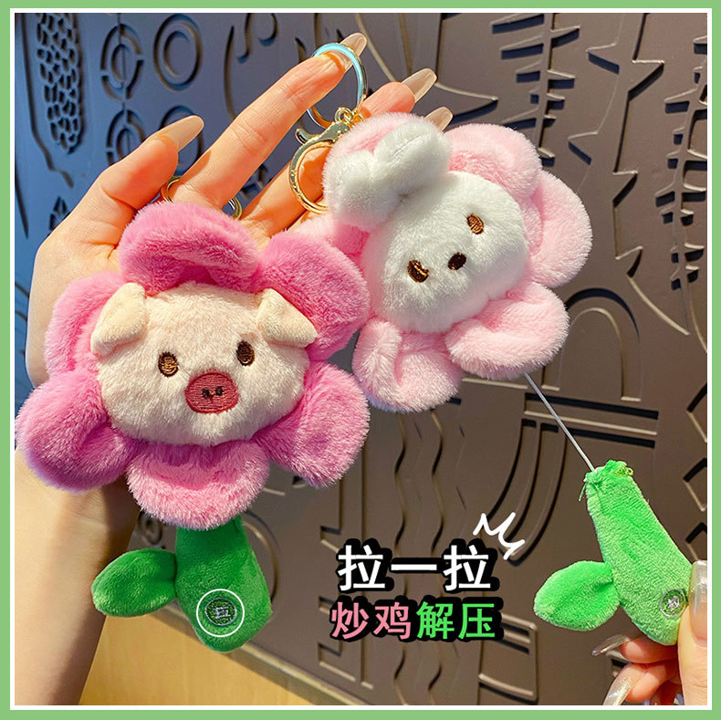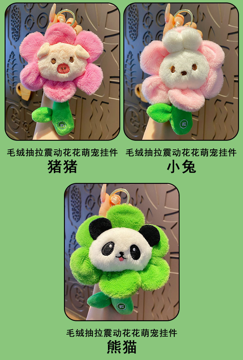 Cartoon Pulling Vibration Flower Cute Pet Plush Doll Keychain Female Cute Flower Panda Keychain Pendant
