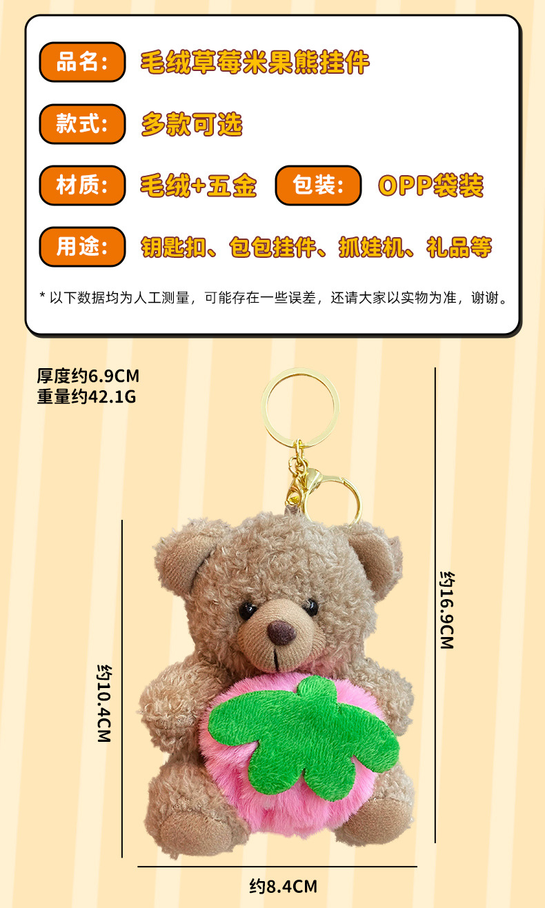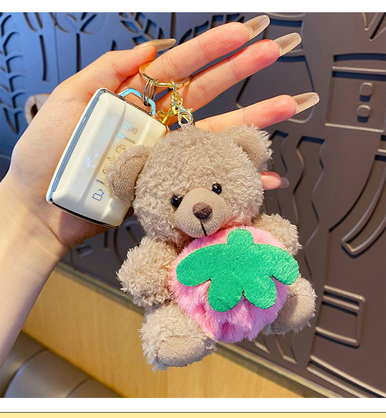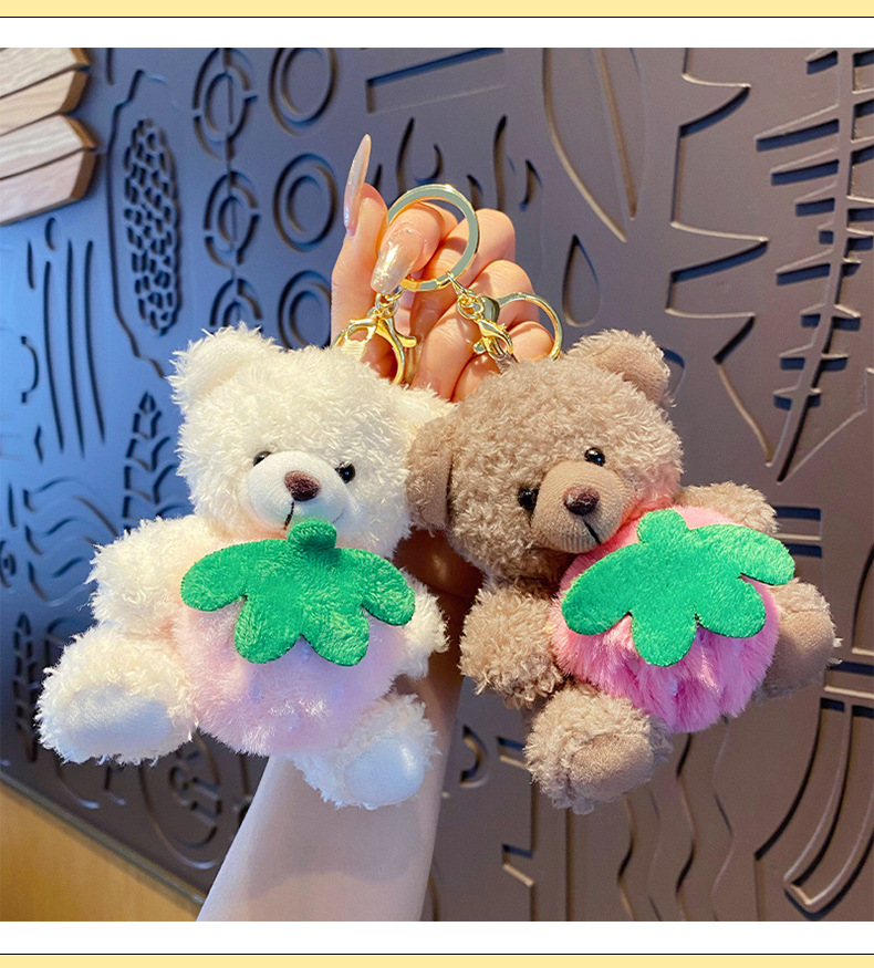 Cartoon Strawberry Rice Fruit Bear Plush Doll Keychain Female Cute Soft Cute Bear Doll Keychain Bag Pendant