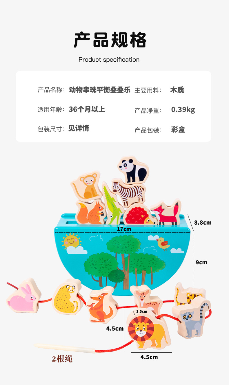 children's animal rope string bead balance building block stacking music kindergarten early education baby puzzle wooden toy