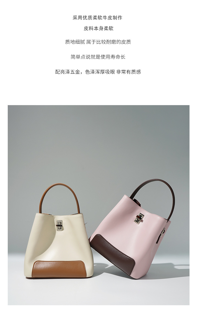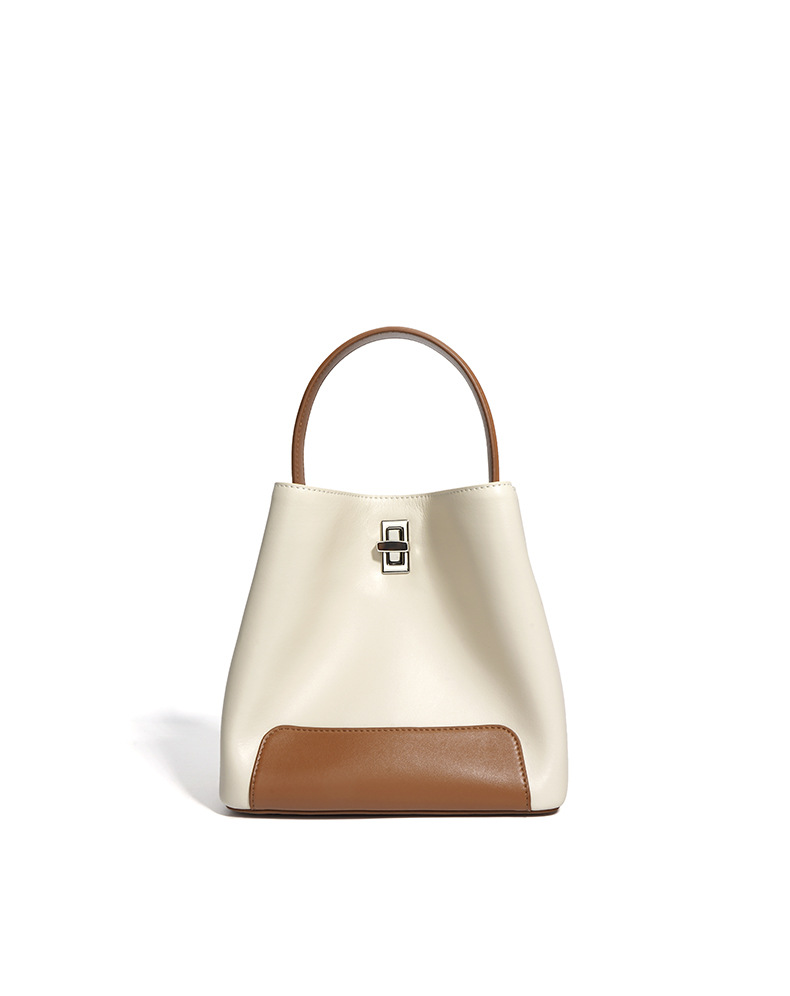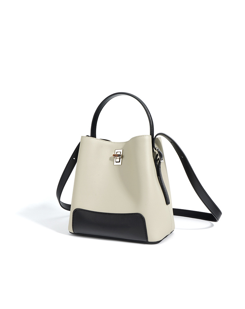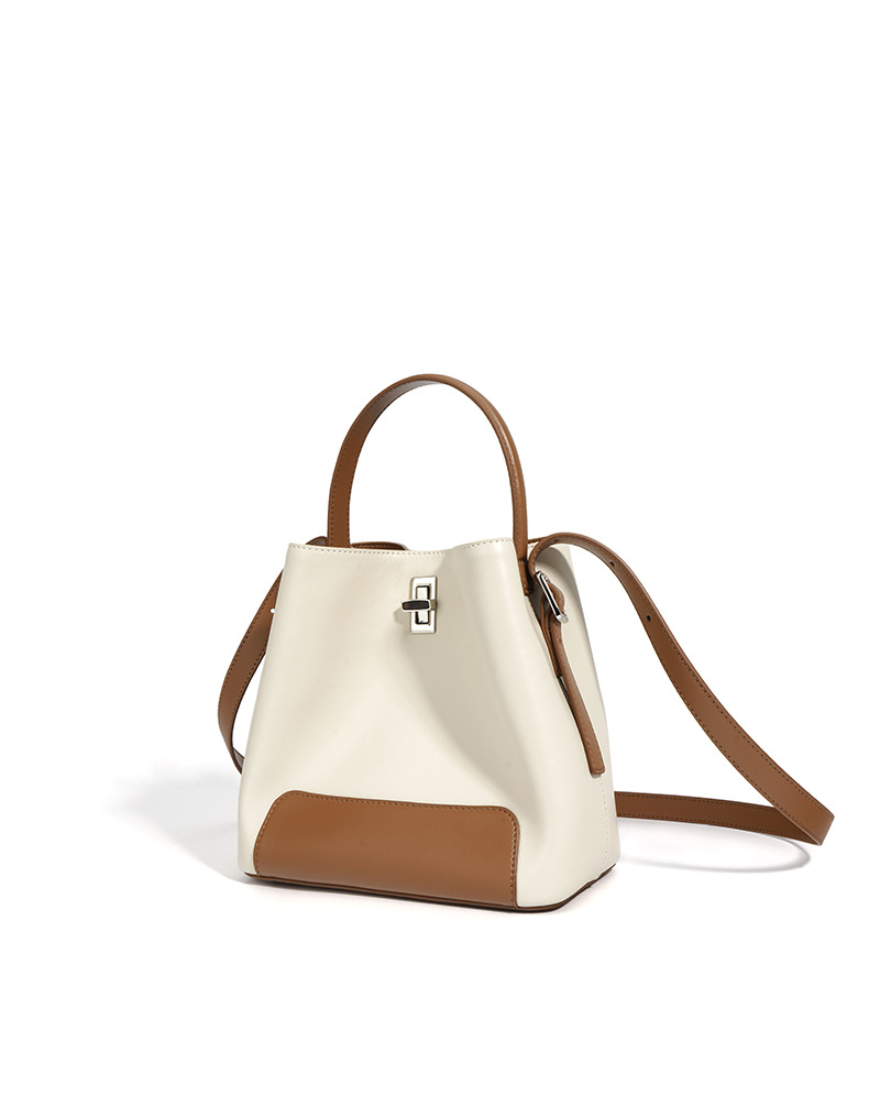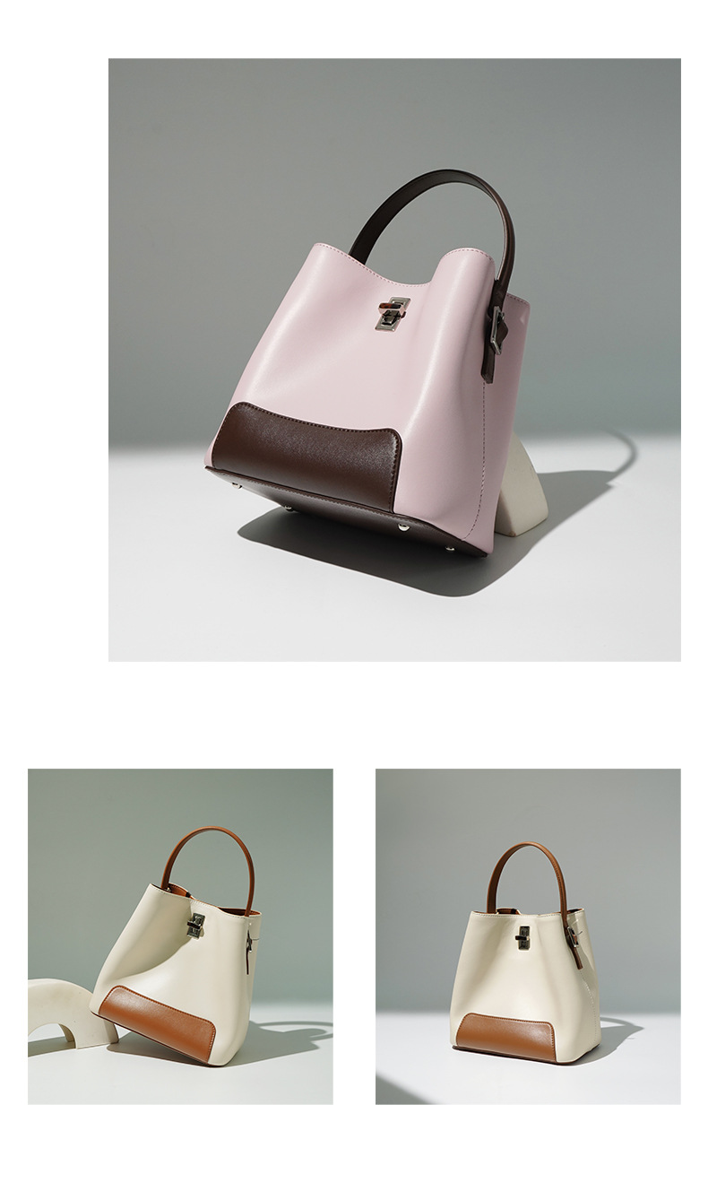Color Block Genuine Leather Shoulder Bag