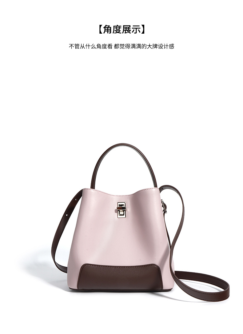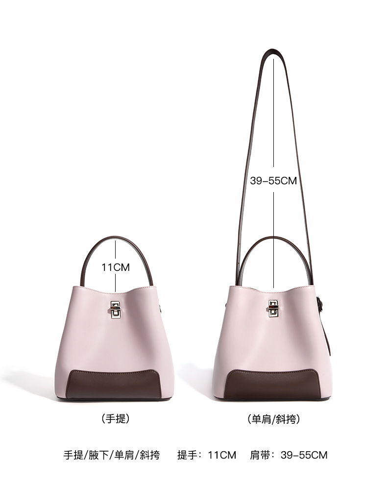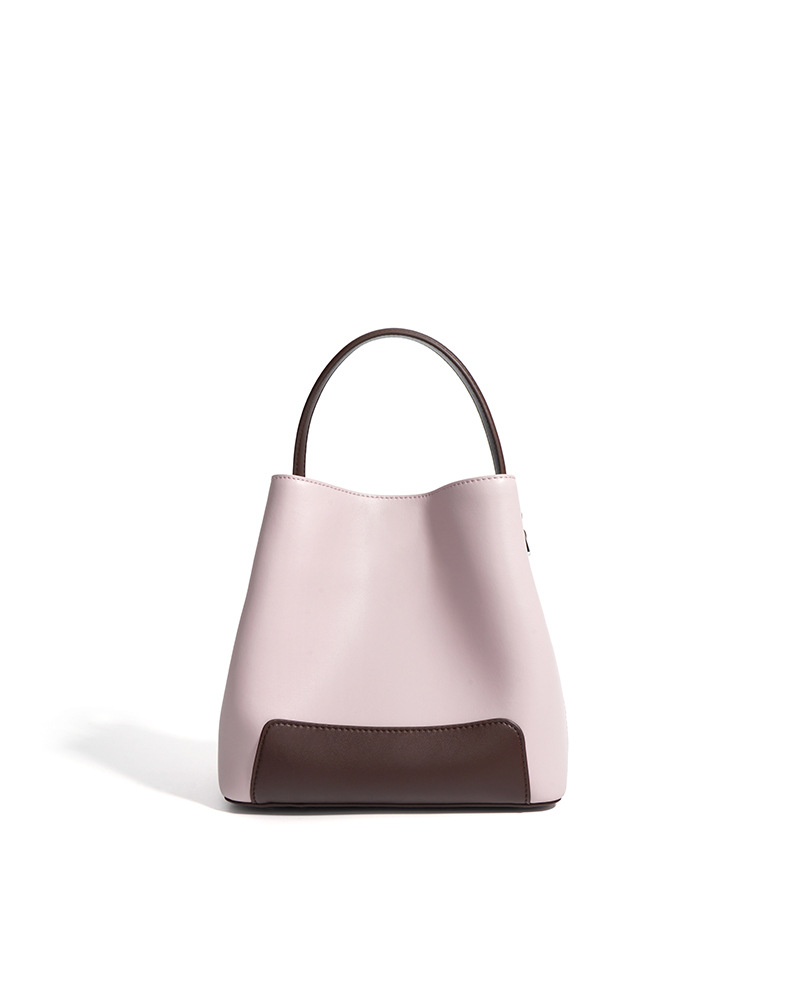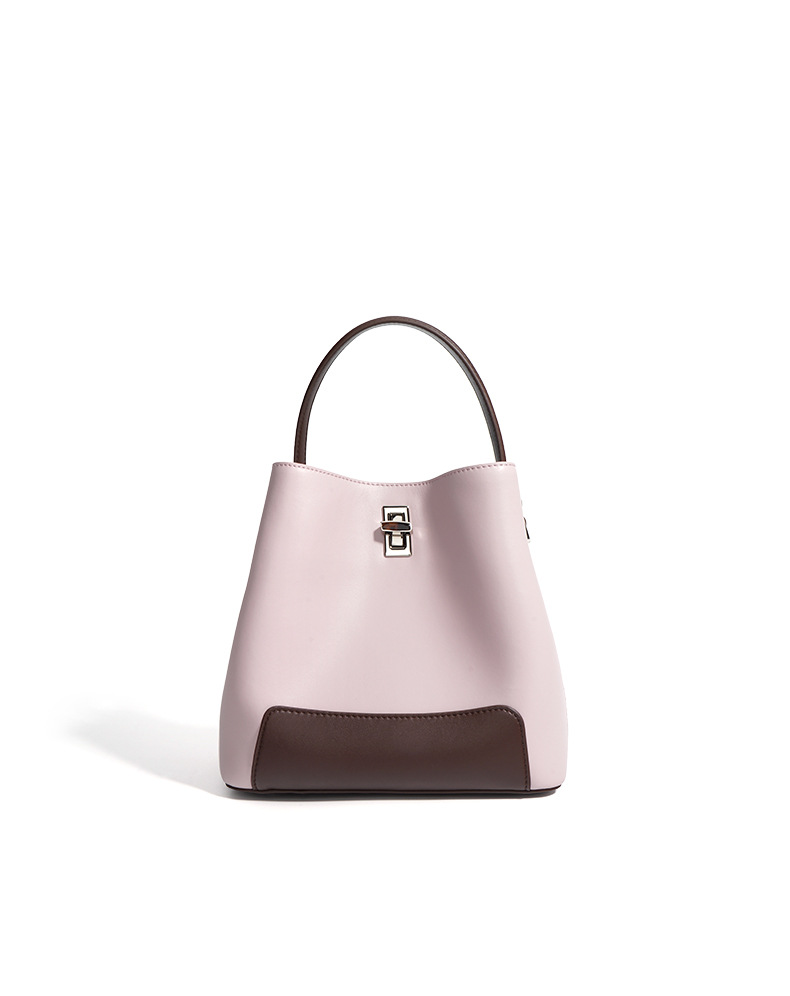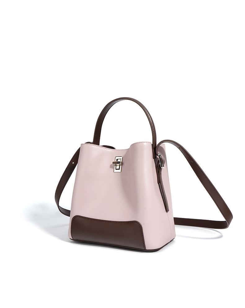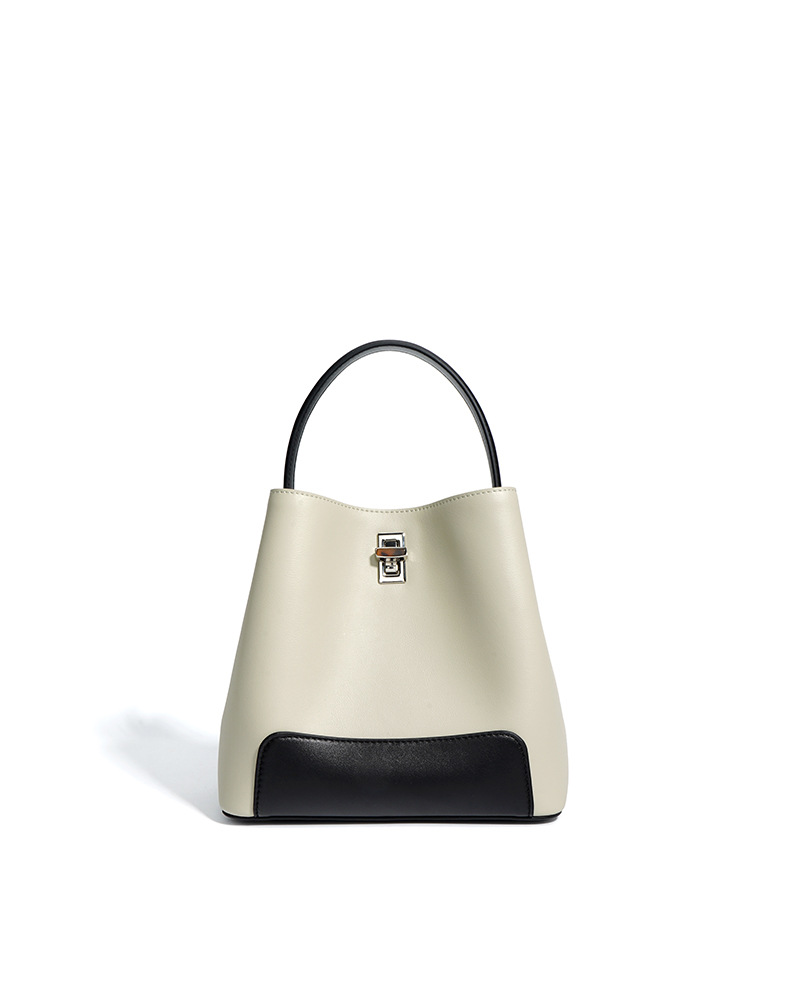 Color Block Genuine Leather Shoulder Bag