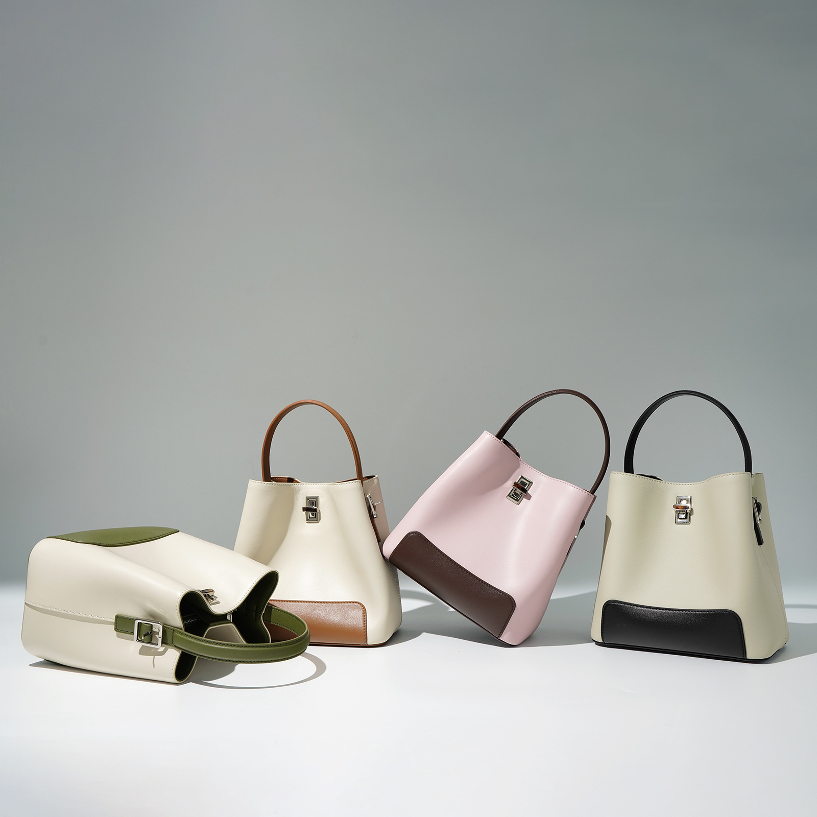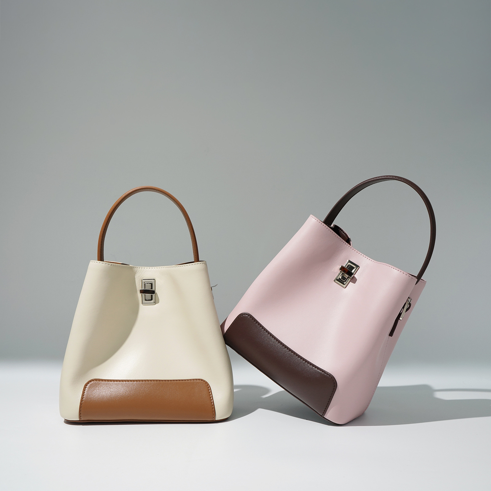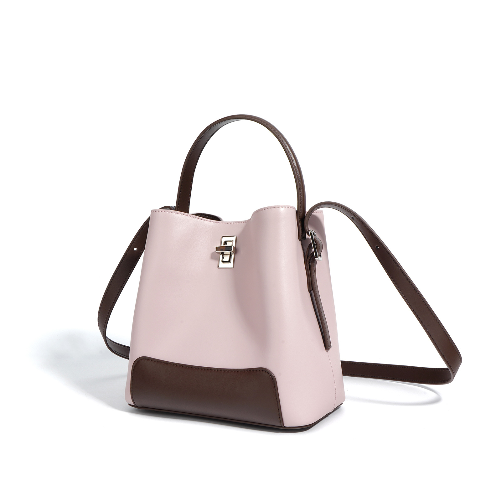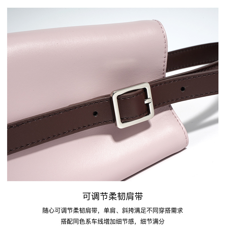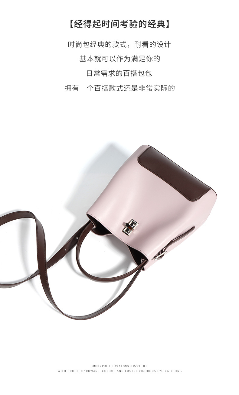 Color Block Genuine Leather Shoulder Bag