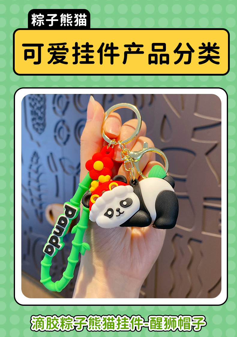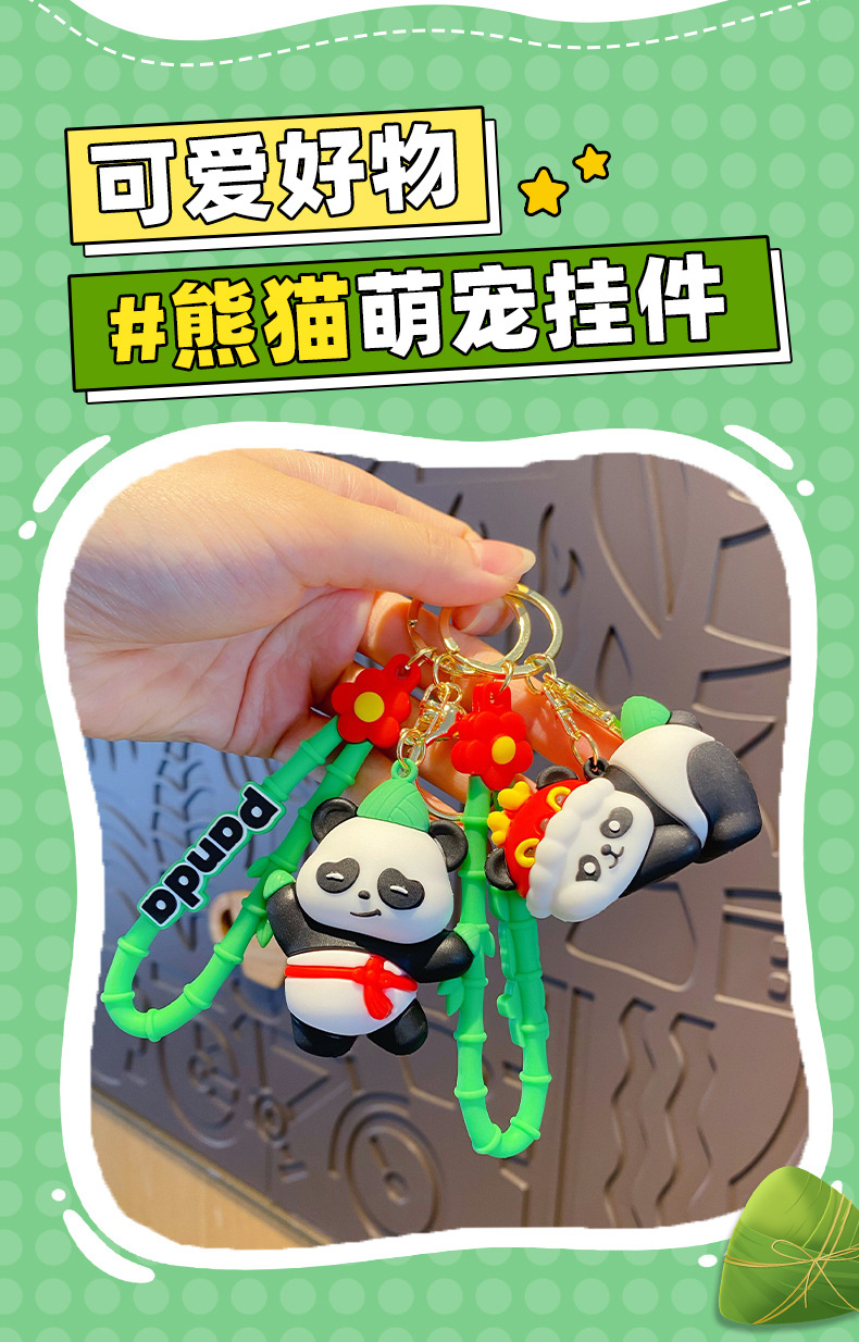Creative Dragon Boat Festival Zongzi Panda Car Key Chain Cute Cartoon Glue Drop Doll Male and Female Backpack Hanging Gift
