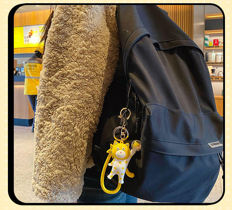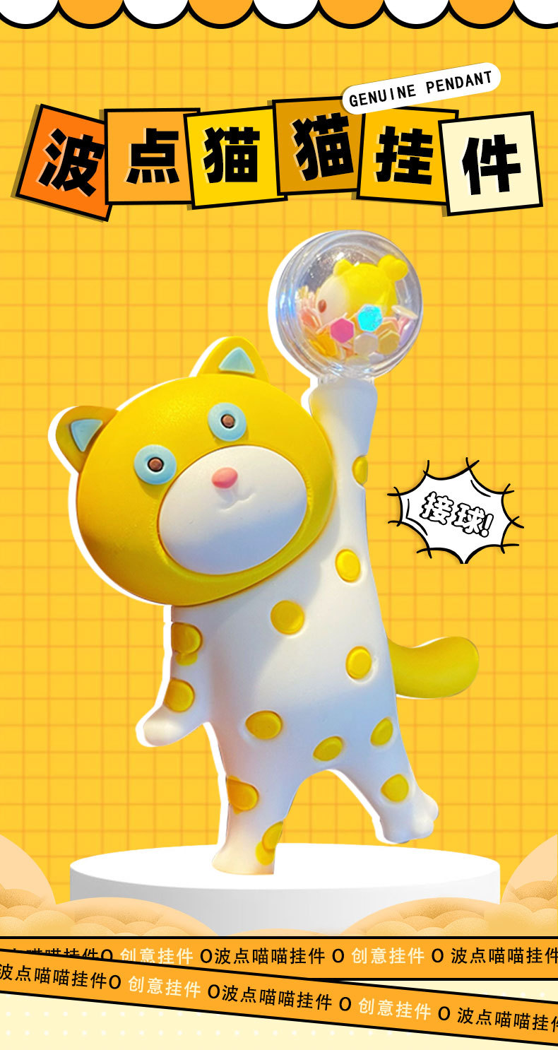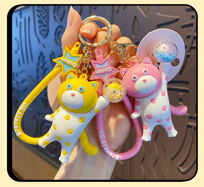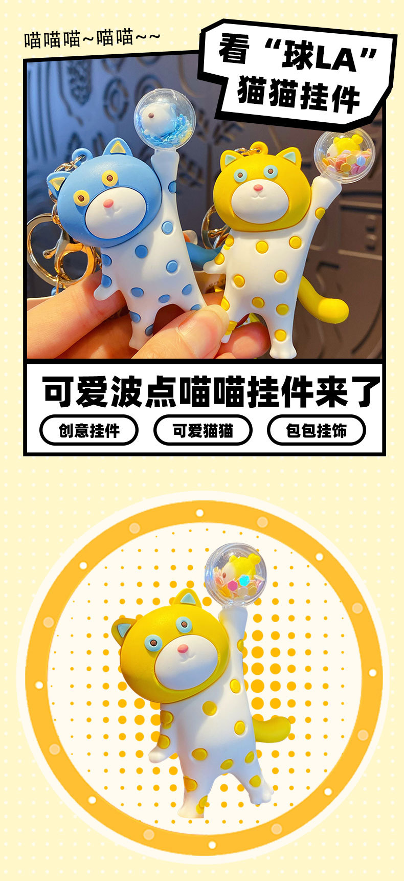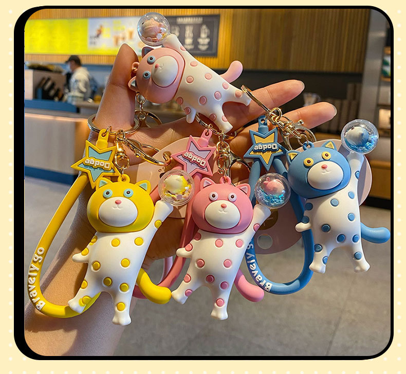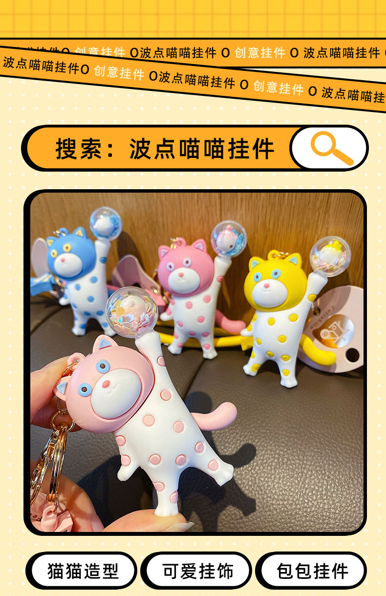 Cute polka dot cat keychain for men's and women's trendy cars, cute cat doll keychain, exquisite couple backpack pendant