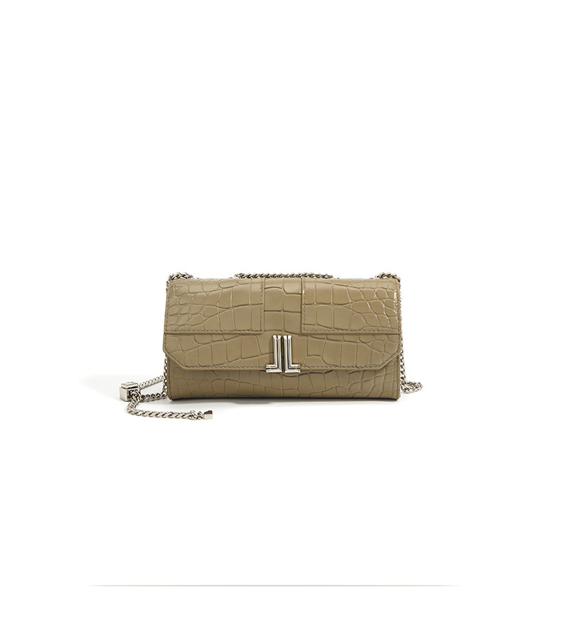 Crocodile-Pattern Genuine Leather Crossbody Bag