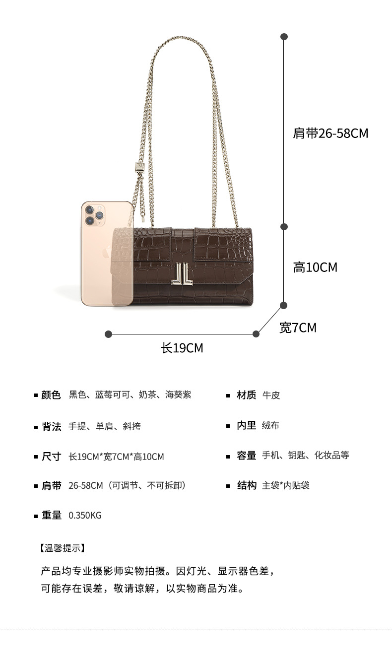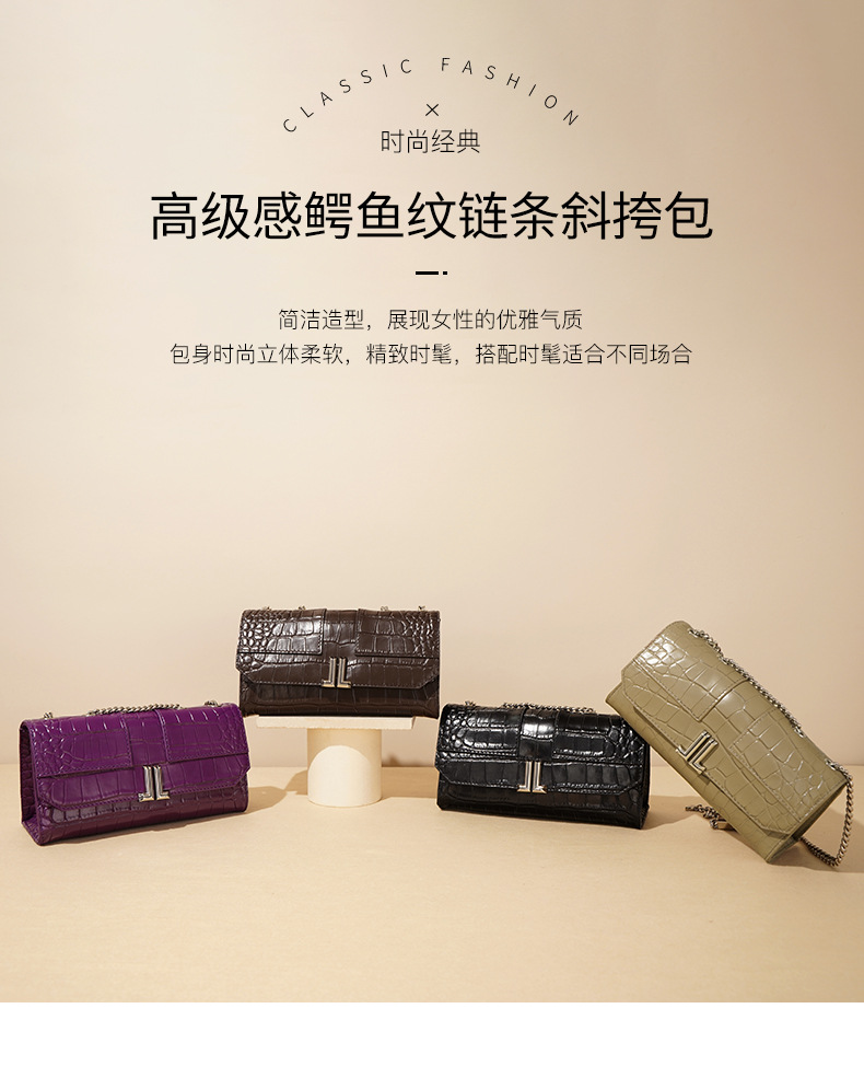 Inspired by timeless elegance, this crocodile-pattern genuine leather crossbody bag offers versatility and sophistication. Perfect for casual outings or formal events.