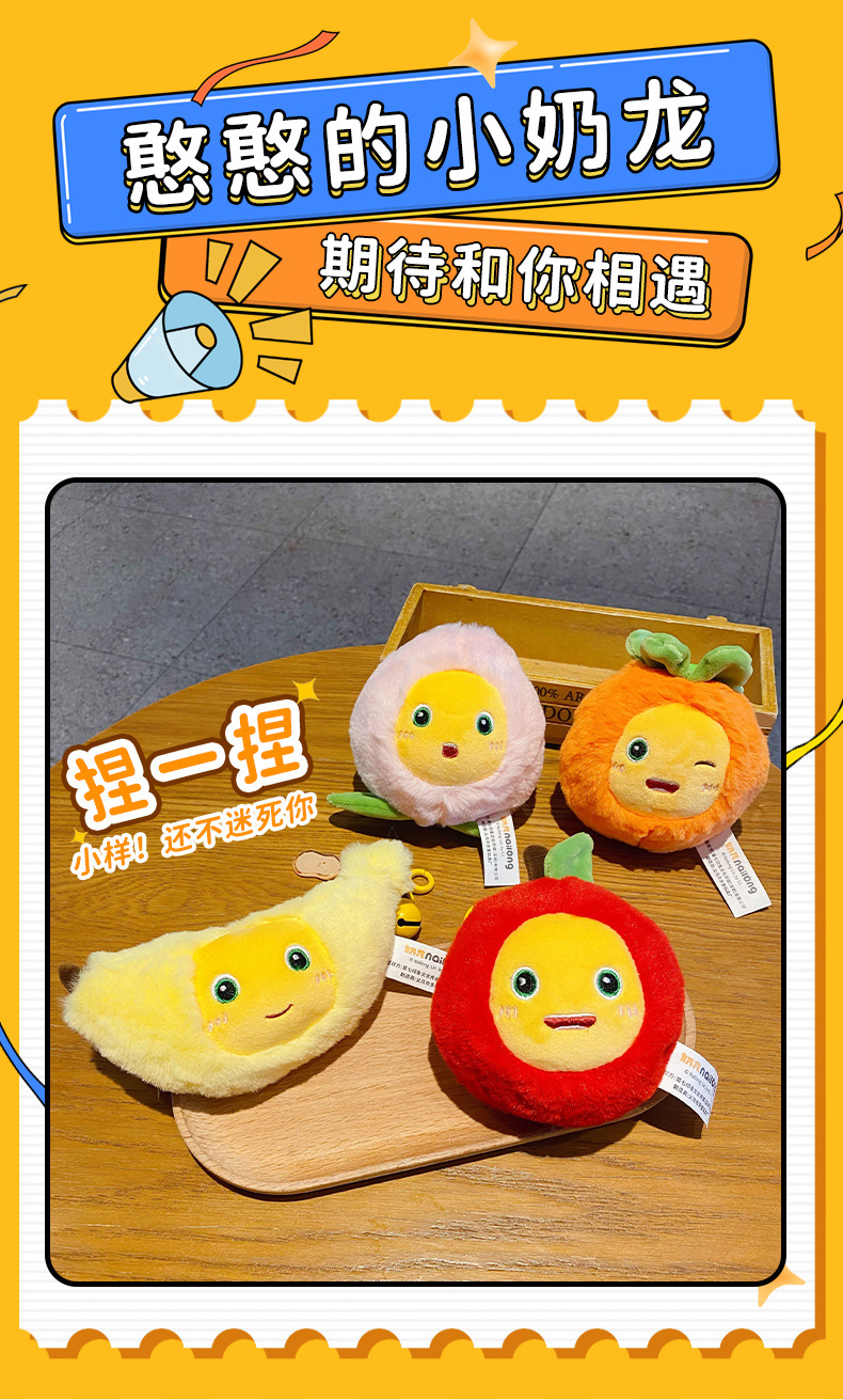 Relieve stress in style with the Fruit Milk Dragon Pinch Music Keychain. This charming plush doll keychain doubles as a stress-relief toy, perfect for female users. Attach it to your backpack or use it as a playful desk accessory for everyday fun.