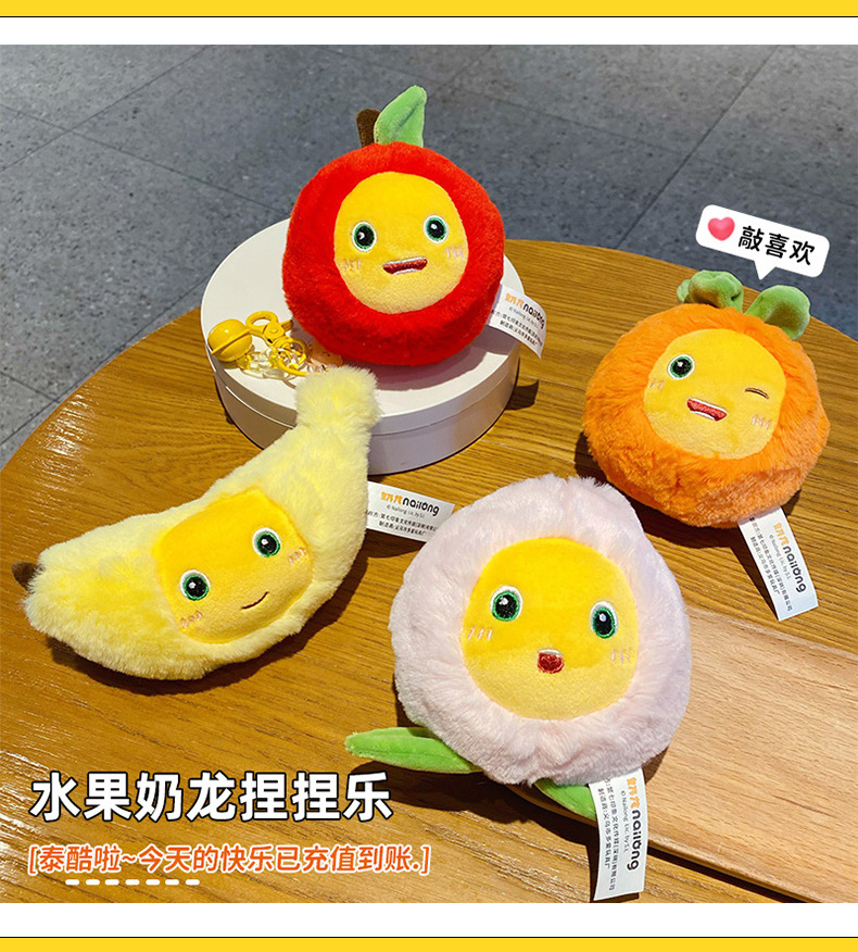 Fruit Milk Dragon Pinch Music Keychain Female Stress Relief Toy Plush Doll Keychain Backpack Pendant