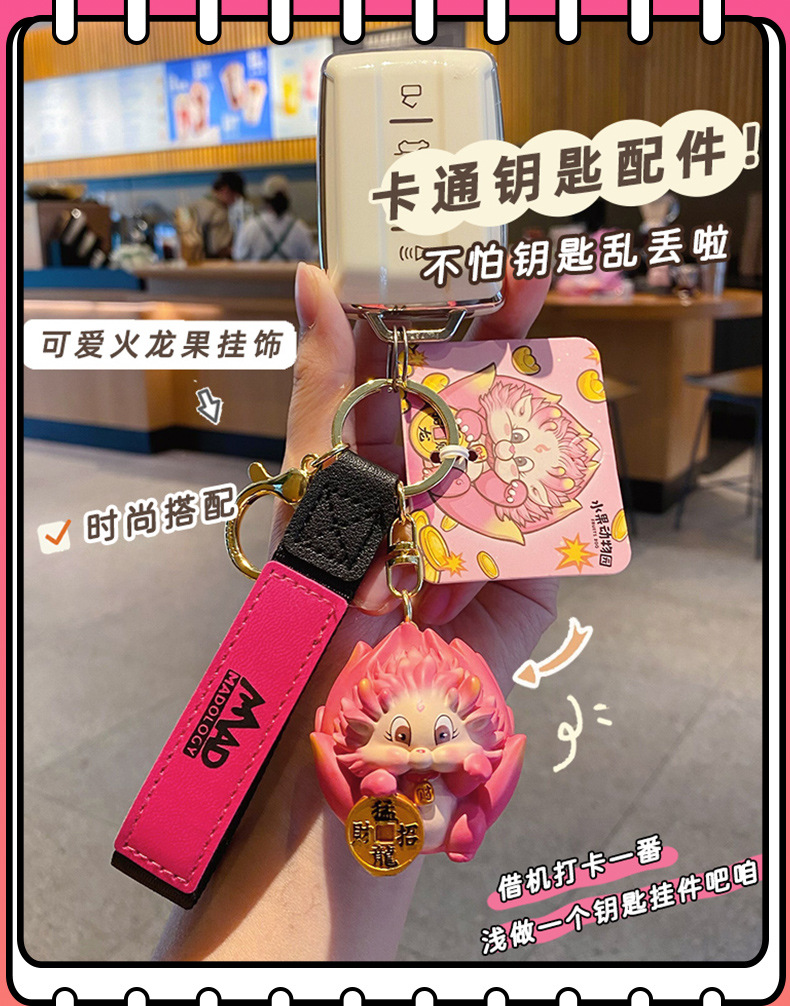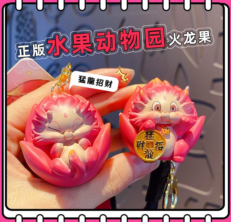 Fruit Zoo Dragon Fruit Keychain Female Cute Exquisite Resin Doll Keychain Bag Pendant