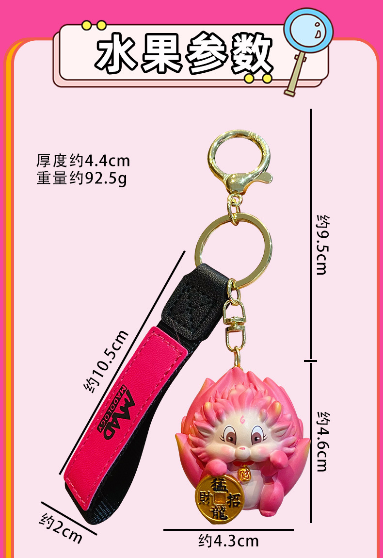 Carry a tropical vibe with the Fruit Zoo Dragon Fruit Keychain! This cute resin doll pendant is a perfect accessory for bags or as a gift.